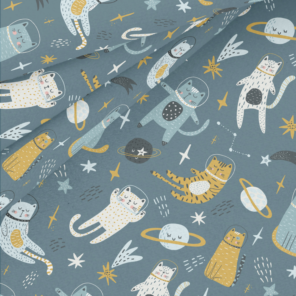 浮在太空的貓貓水晶絨(幅寬160公分)