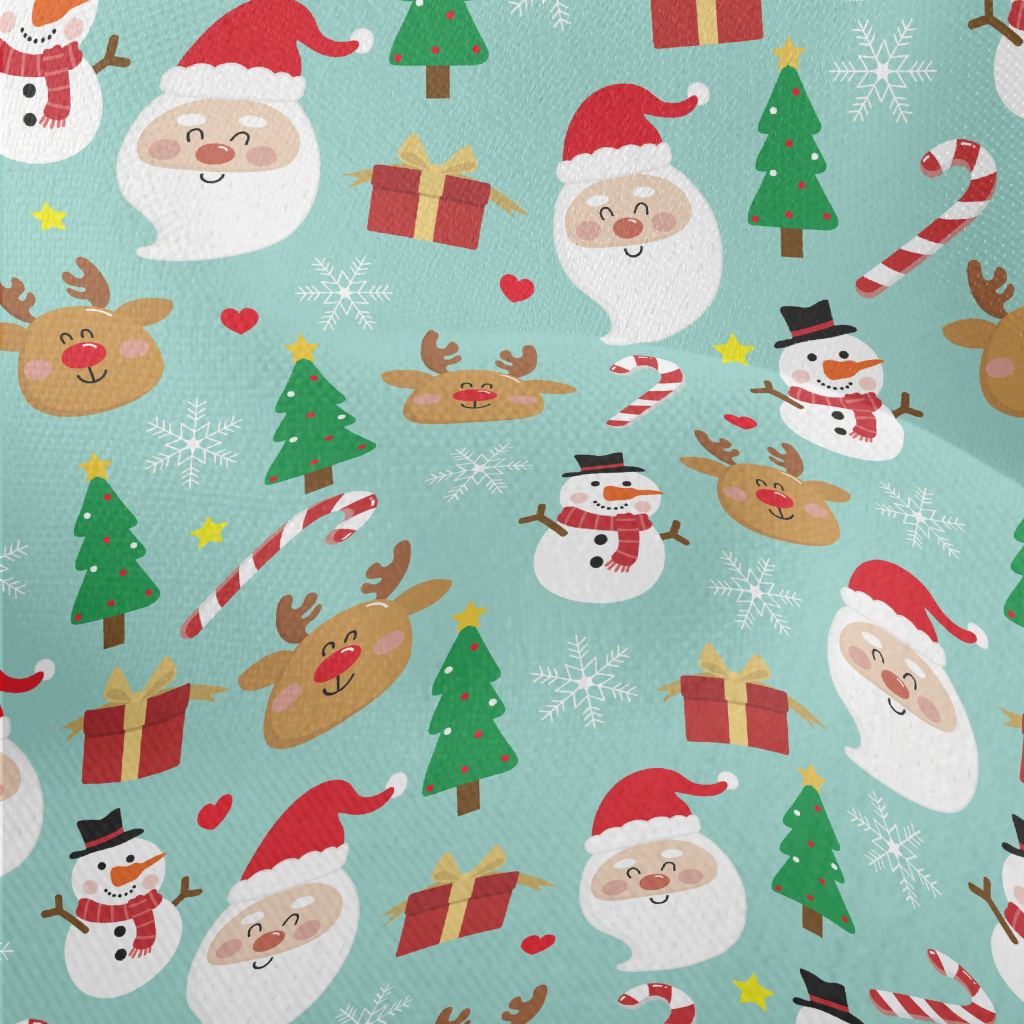 可愛的聖誕老人和聖誕樹竹節麻(幅寬150公分)