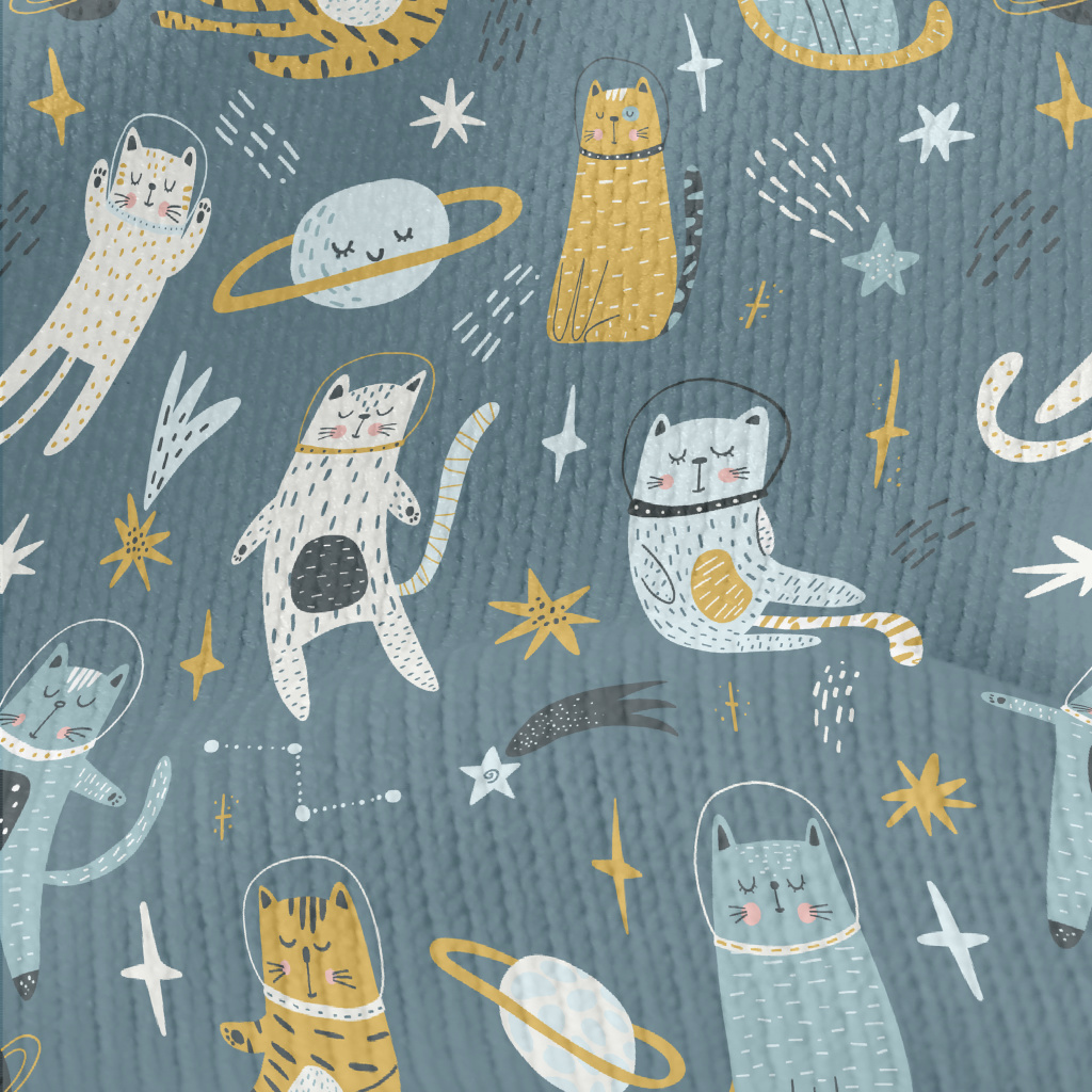 浮在太空的貓貓仿毛衣布(幅寬150公分)