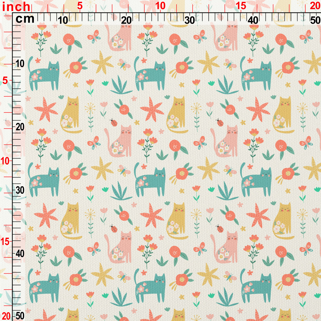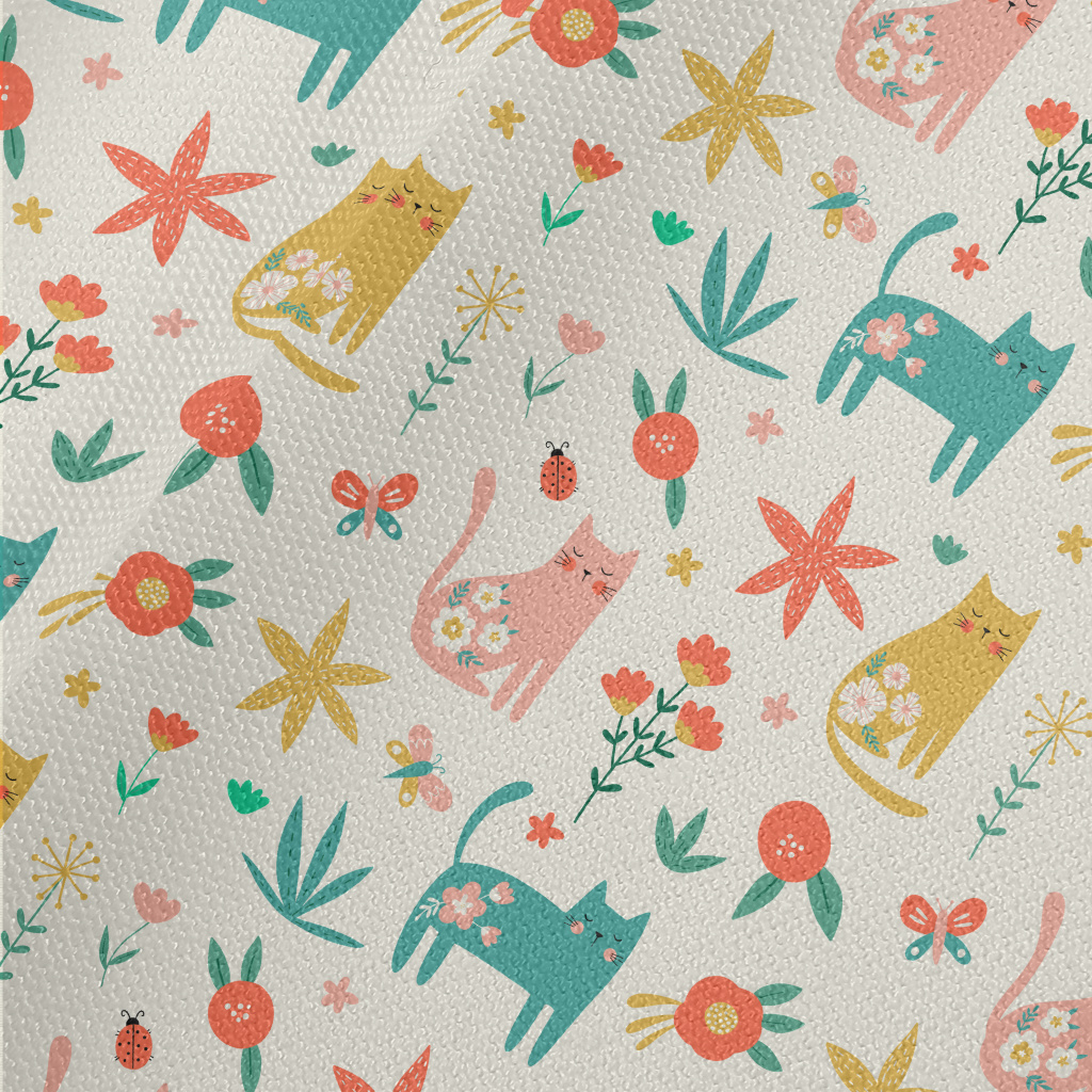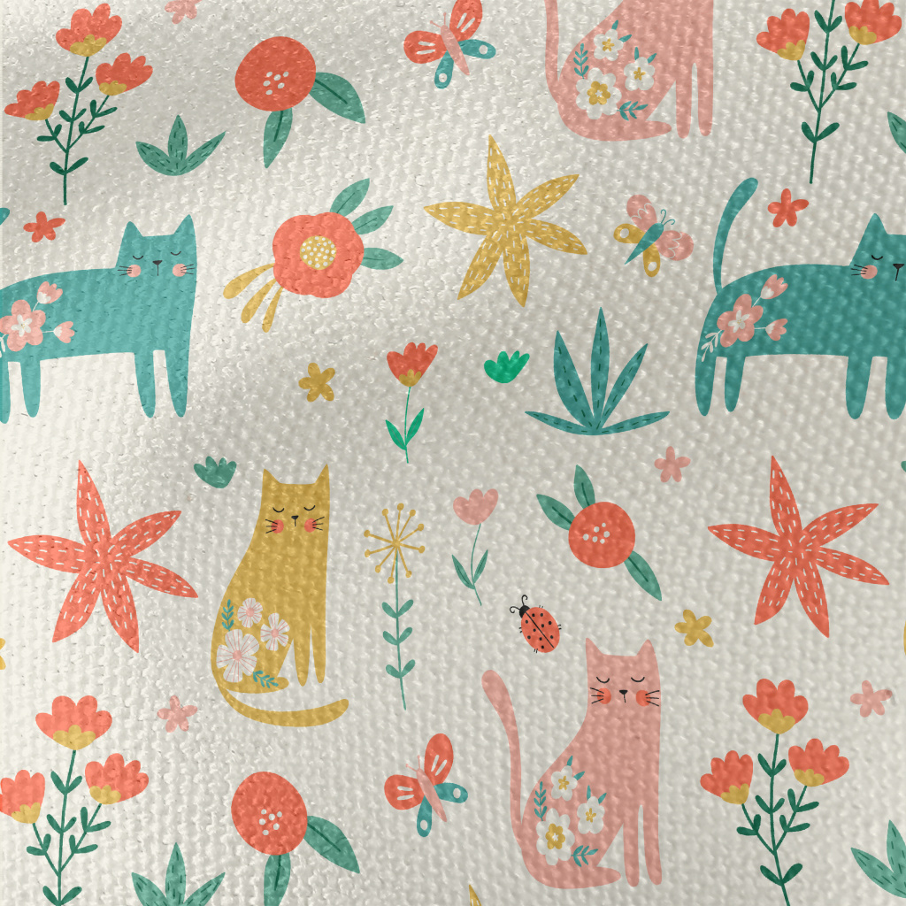 高貴優雅花卉貓咪帆布(幅寬150公分)