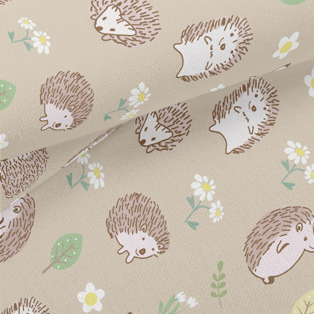 可愛手繪的刺蝟竹節麻(幅寬150公分)