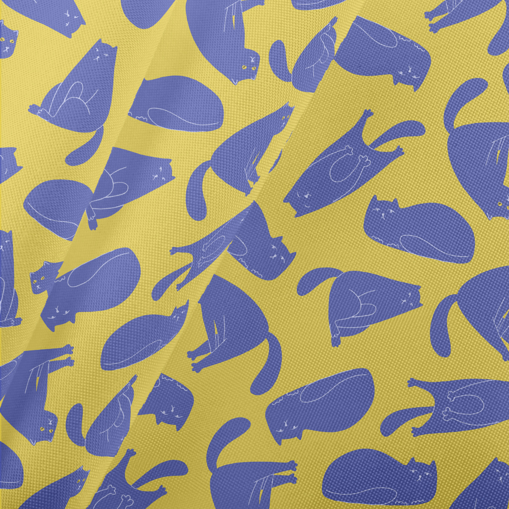 悠閒胖胖的藍色貓咪春亞紡(幅寬160公分)
