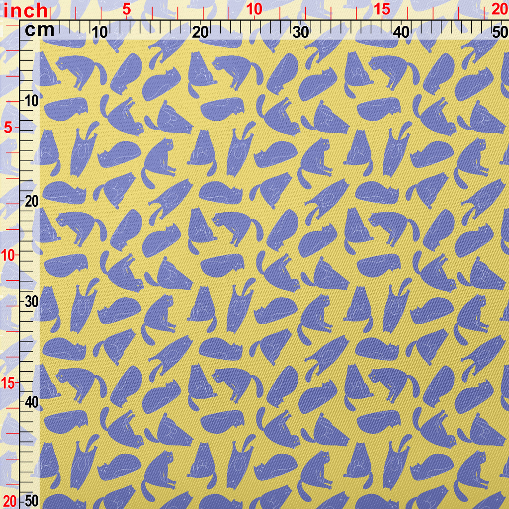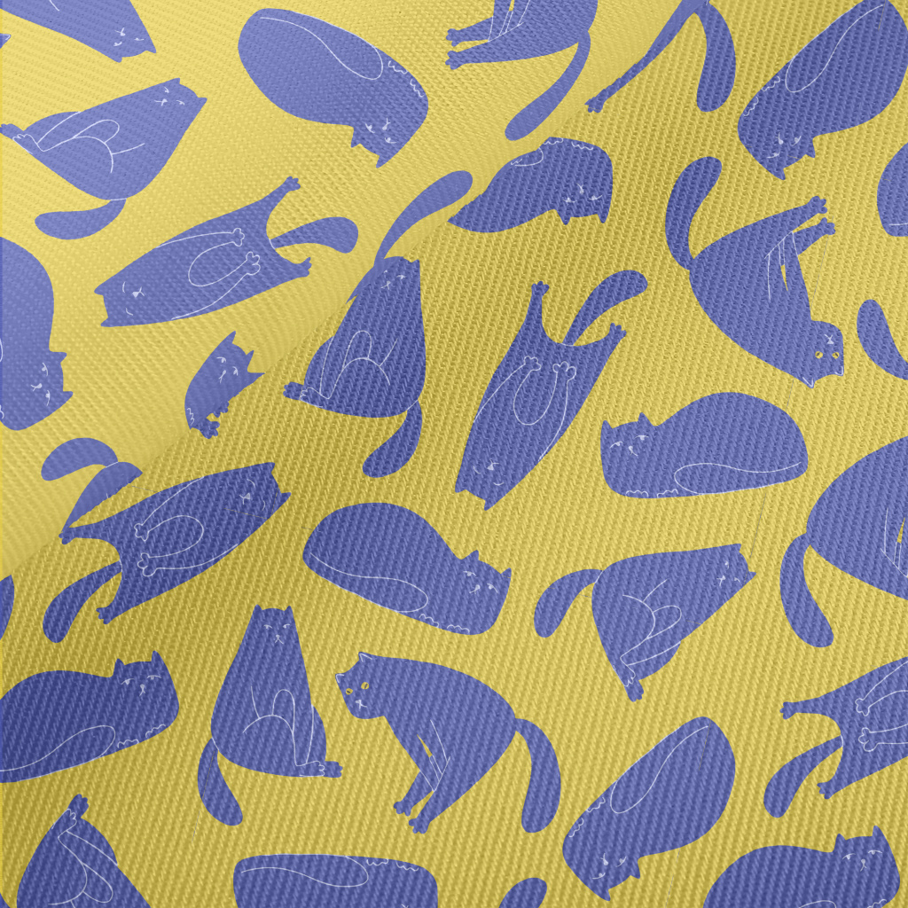 悠閒胖胖的藍色貓咪厚棉布(幅寬150公分)
