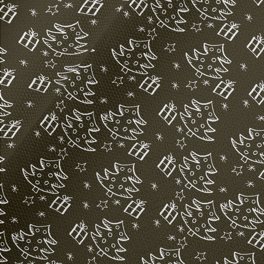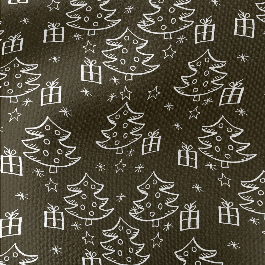 塗鴉黑白的聖誕樹和禮物帆布(幅寬150公分)