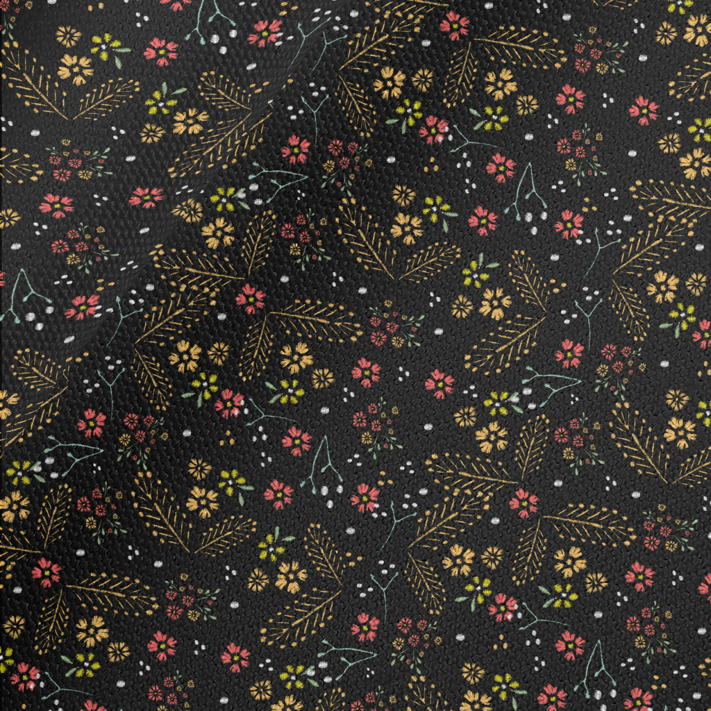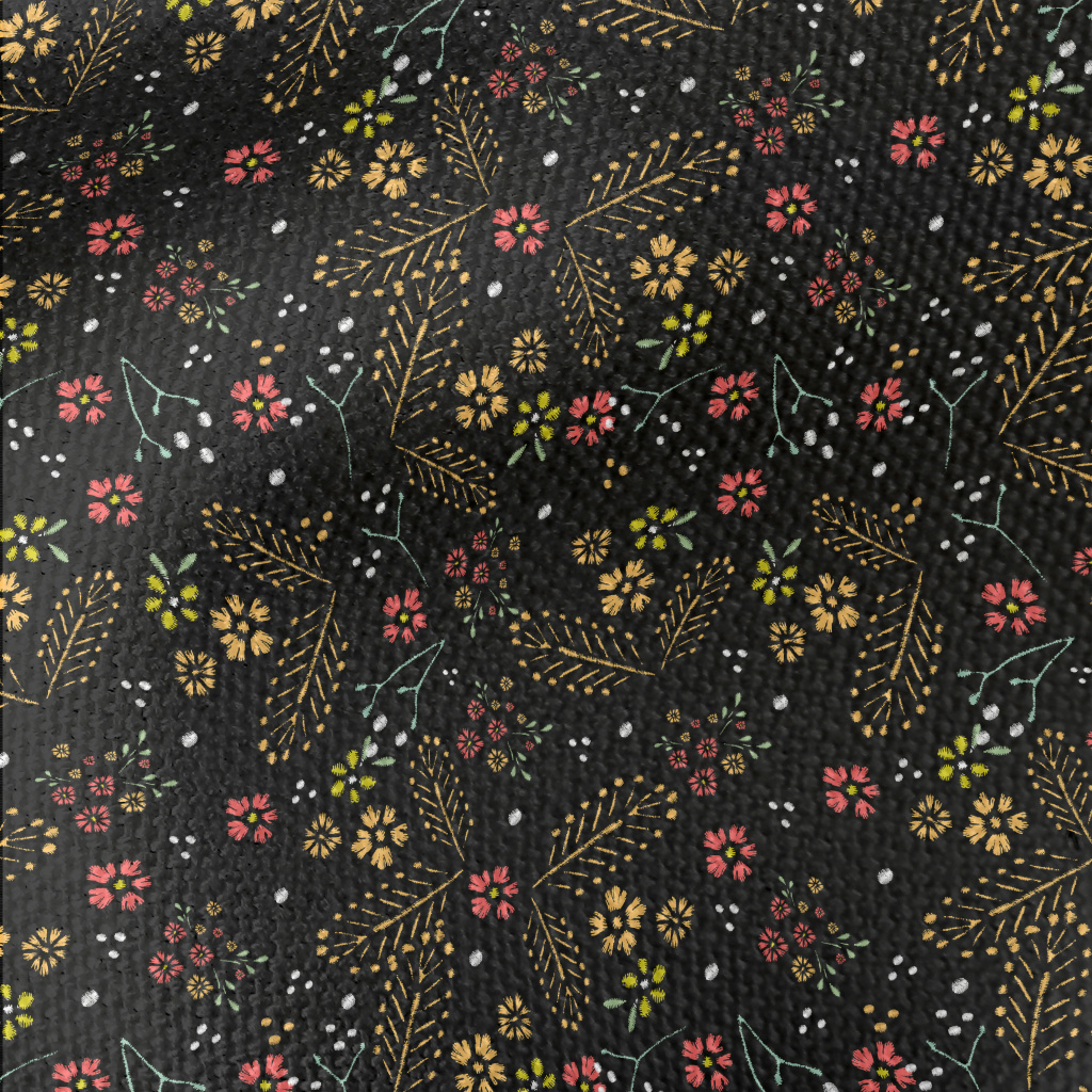 精美刺繡的花和草帆布(幅寬150公分)