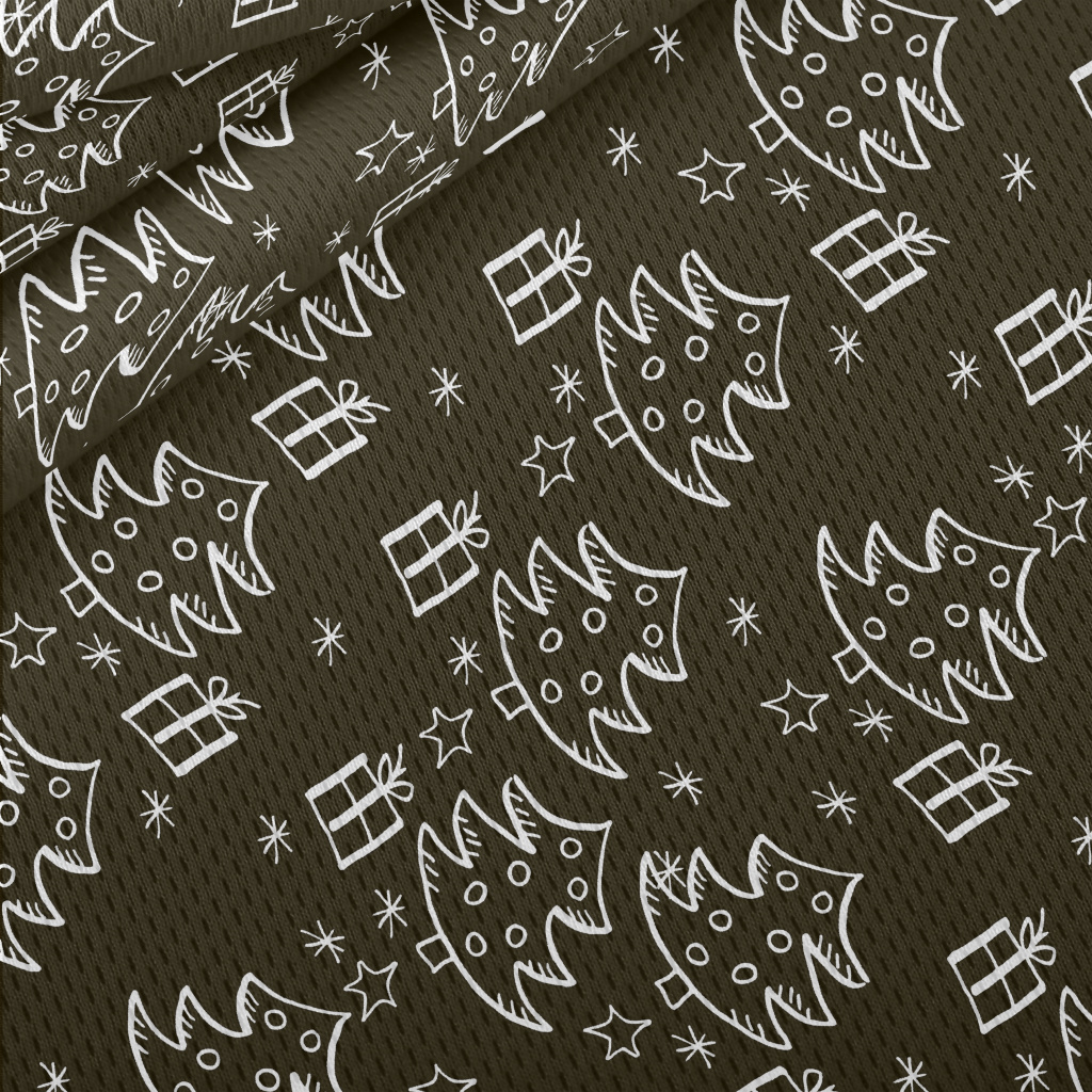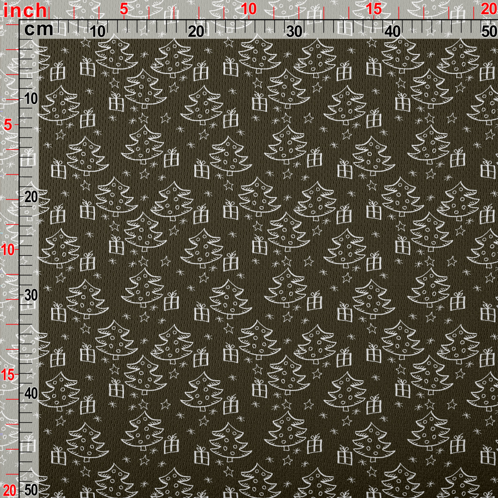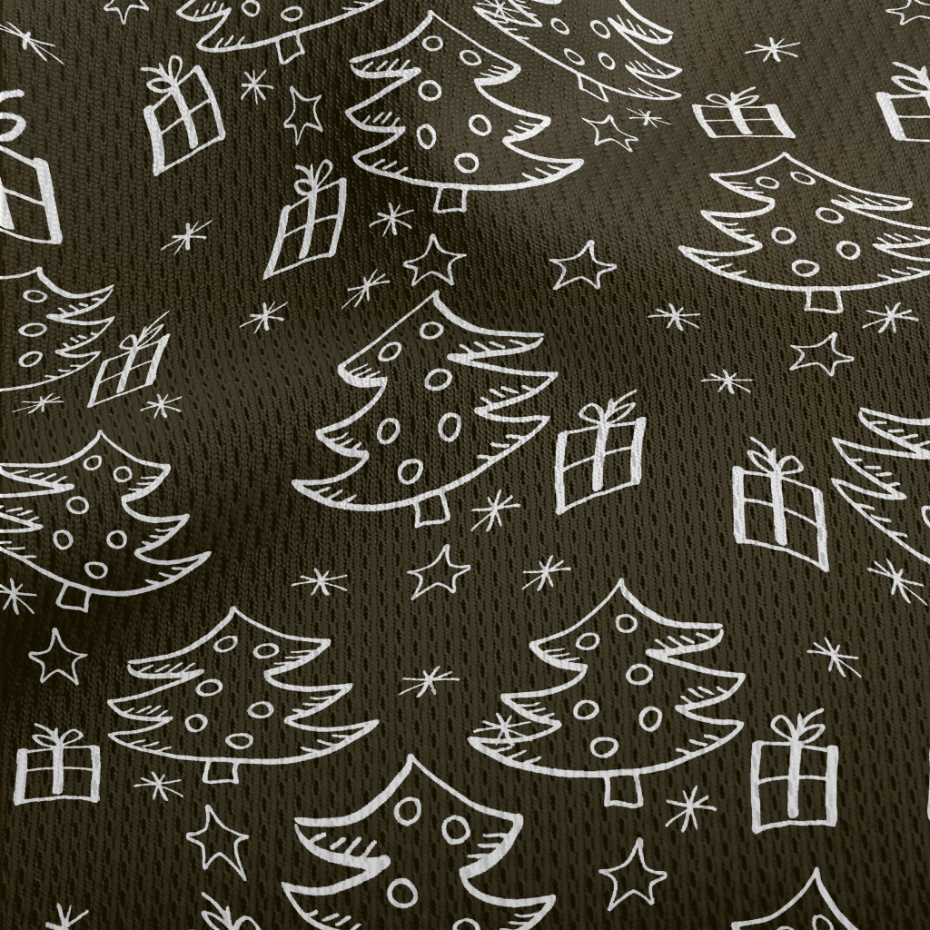 塗鴉黑白的聖誕樹和禮物鳥眼布(幅寬160公分)
