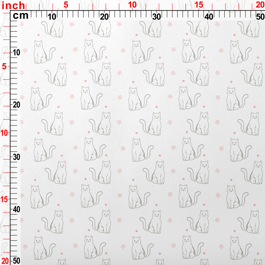 黑白貓咪與小花斜紋布(幅寬150公分)