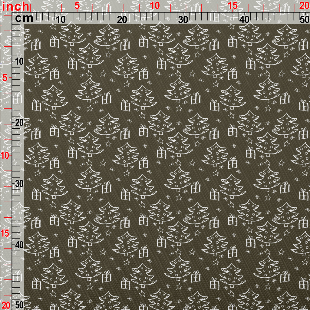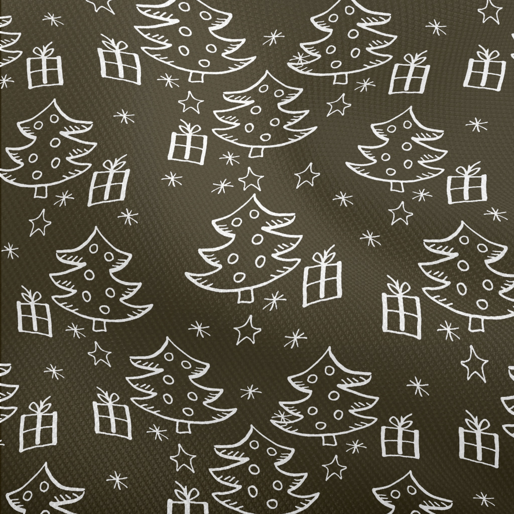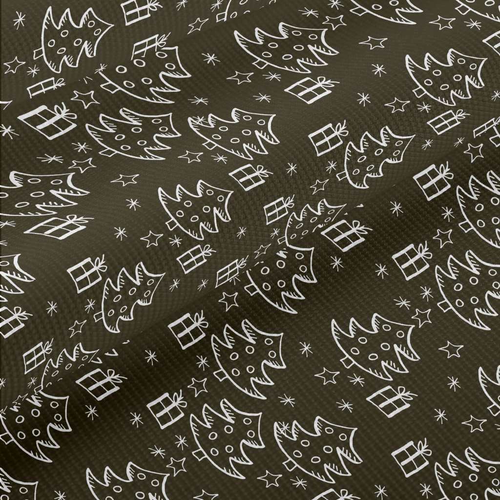 塗鴉黑白的聖誕樹和禮物雙斜布(幅寬150公分)