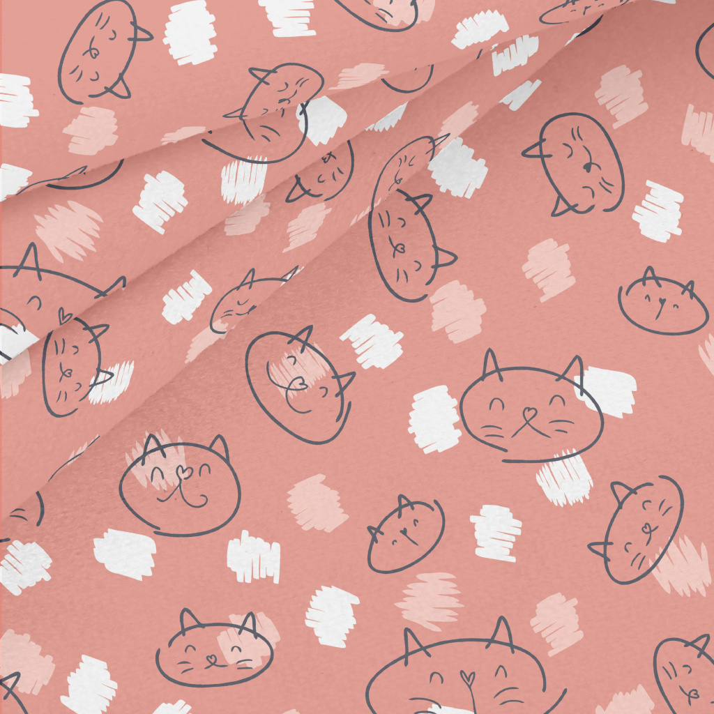 斑點的塗鴉和貓臉水晶絨(幅寬160公分)