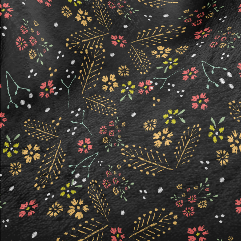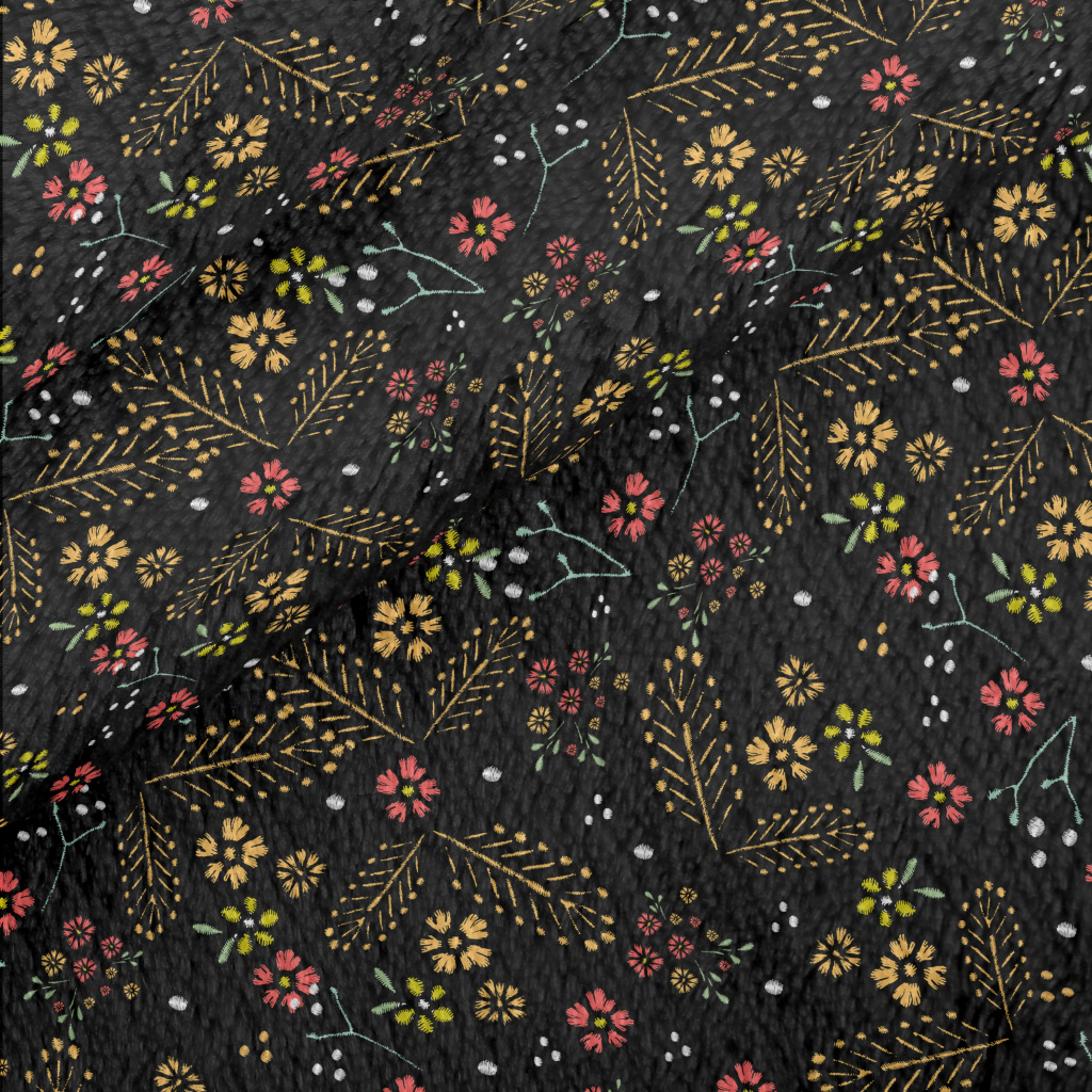 刺繡工巧的花草植物法蘭絨(幅寬150公分)