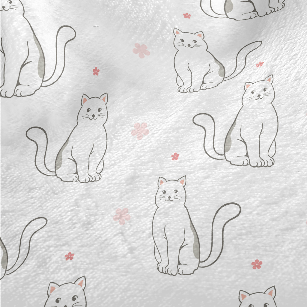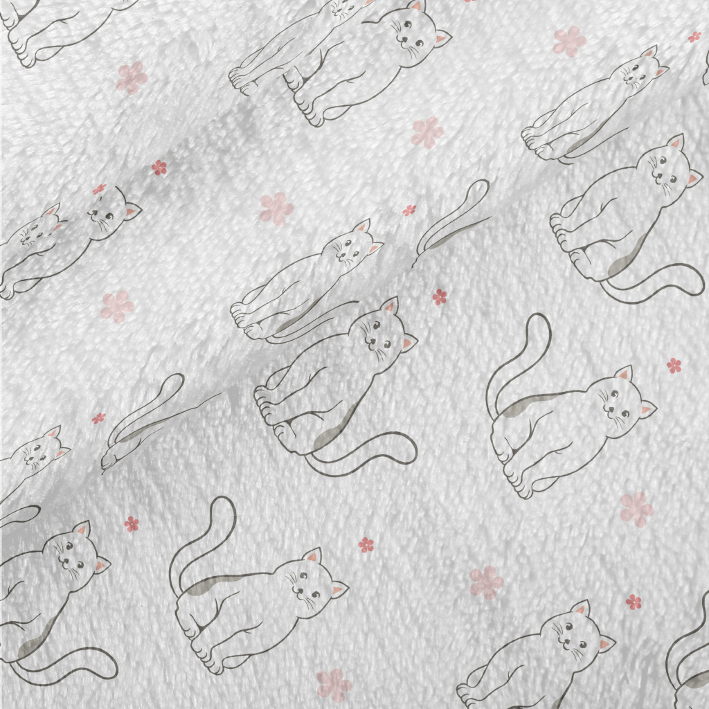 黑白貓咪與小花法蘭絨(幅寬150公分)