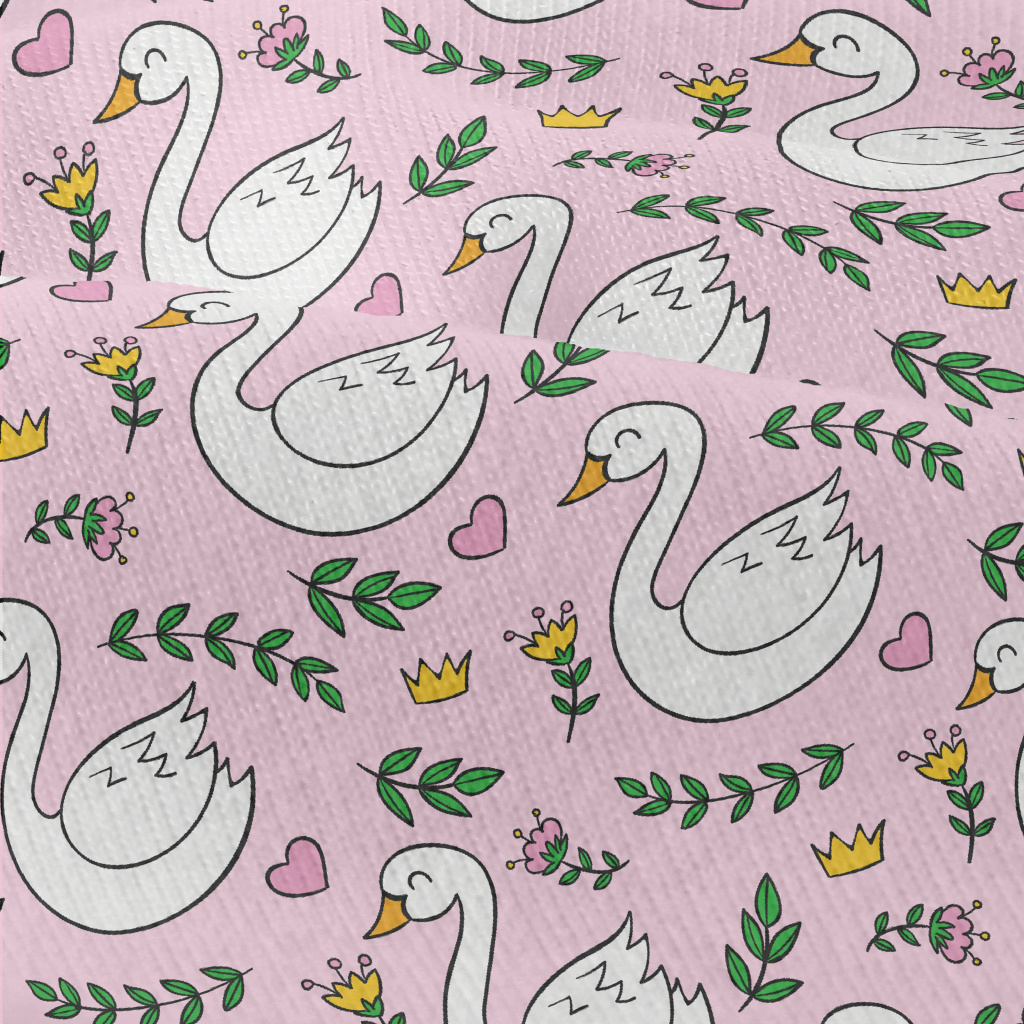 優雅天鵝與皇冠花草仿棉布(幅寬150公分)