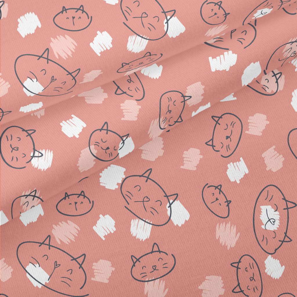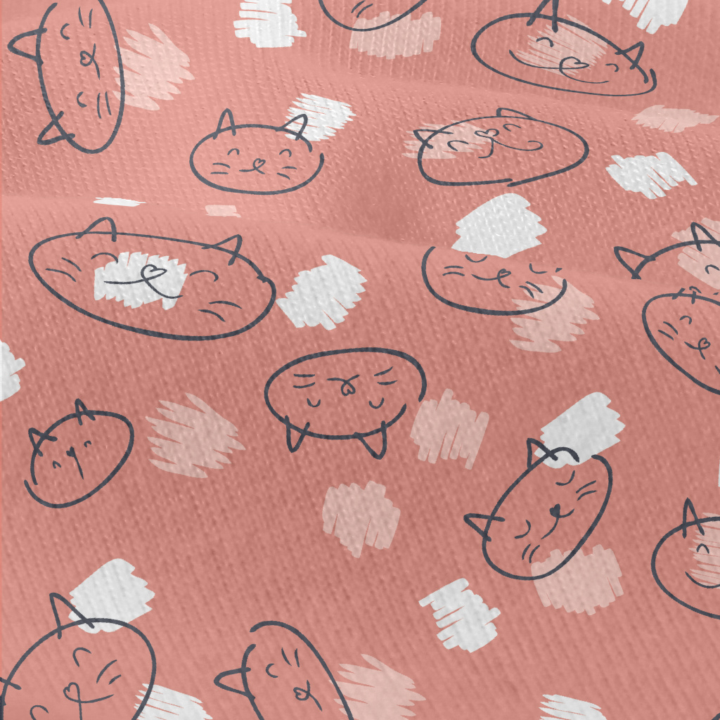 斑點的塗鴉和貓臉仿棉布(幅寬150公分)