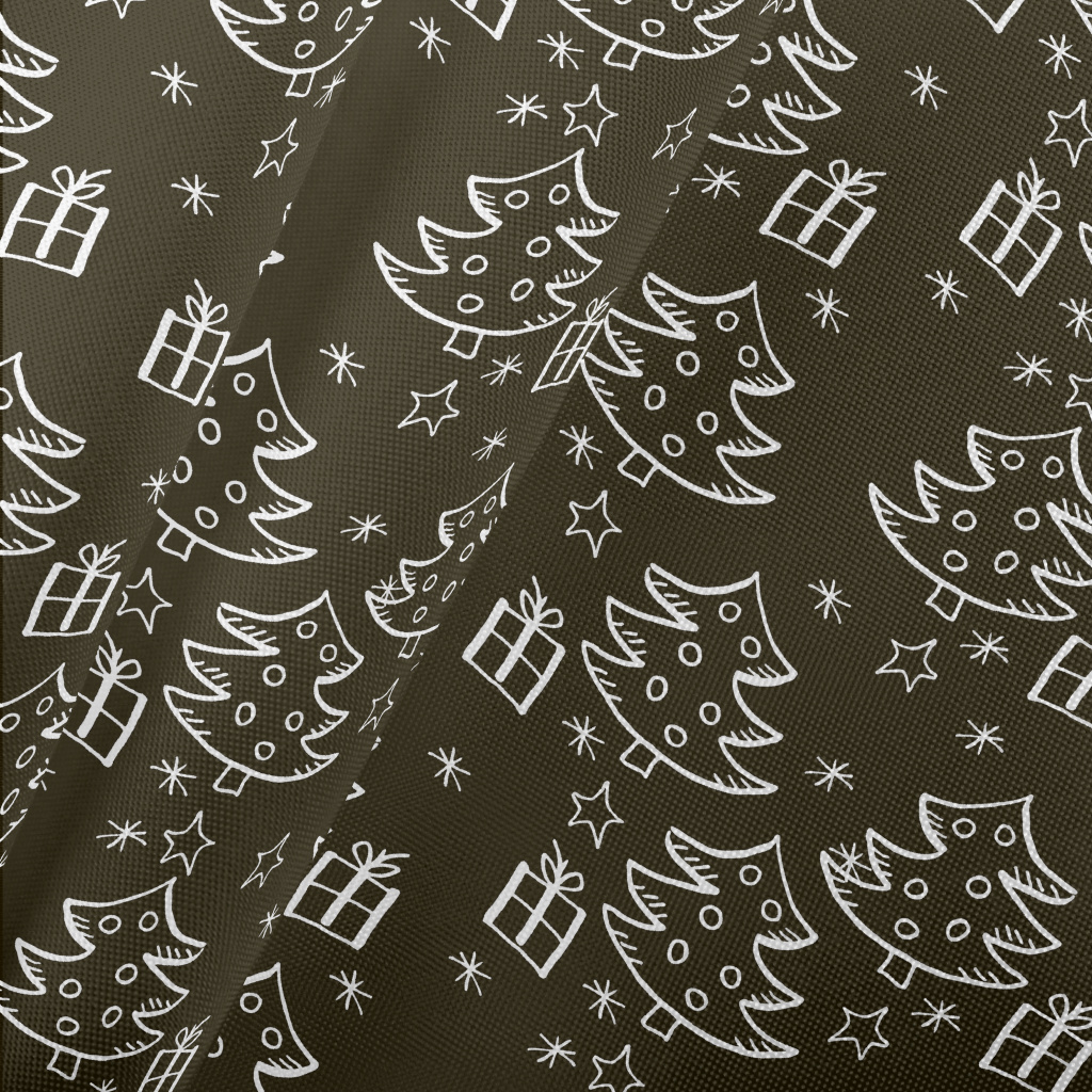 塗鴉黑白的聖誕樹和禮物春亞紡(幅寬160公分)