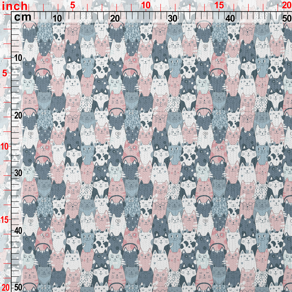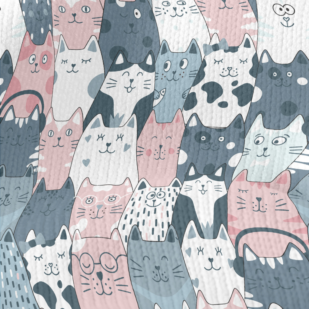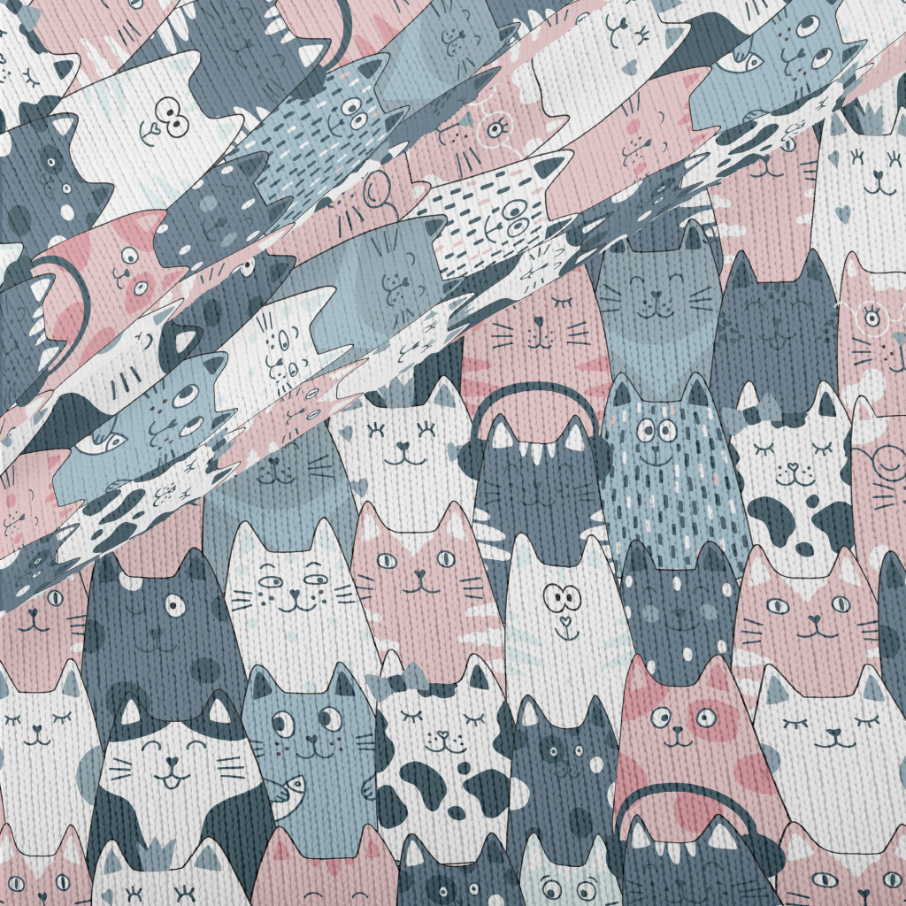 滑稽可愛的貓貓和魚仿毛衣布(幅寬150公分)