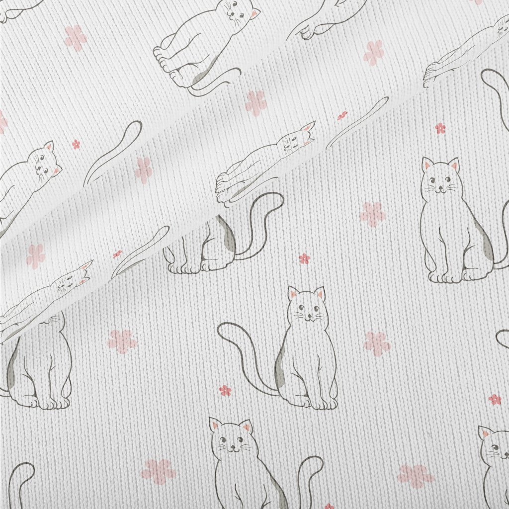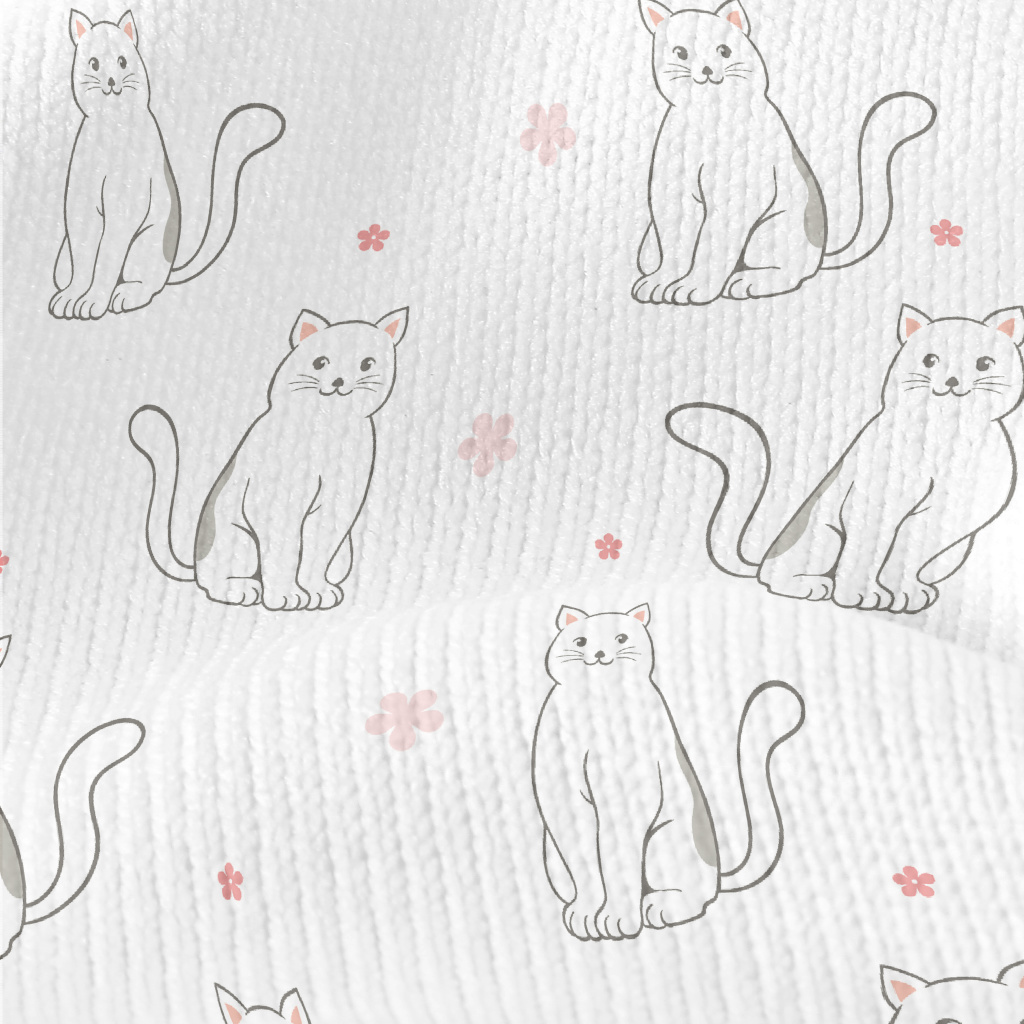 黑白貓咪與小花仿毛衣布(幅寬150公分)