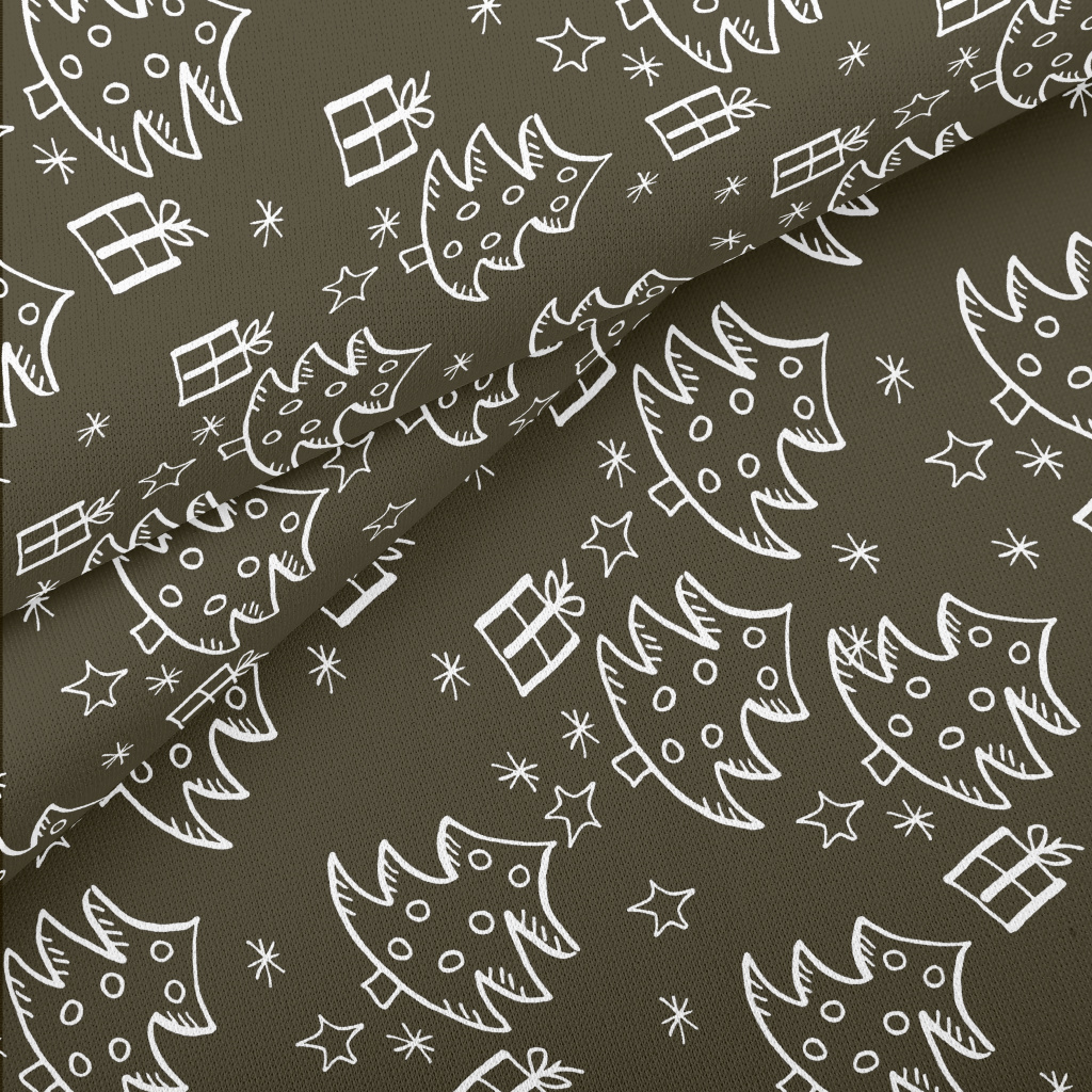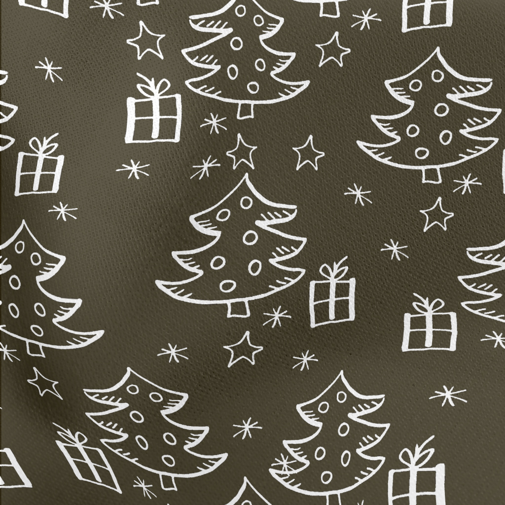 塗鴉黑白的聖誕樹和禮物薄棉布(幅寬150公分)