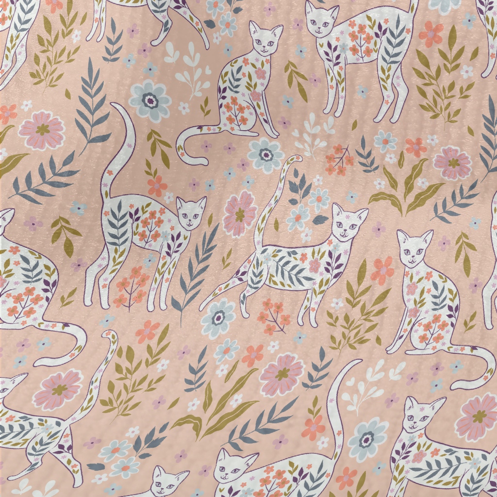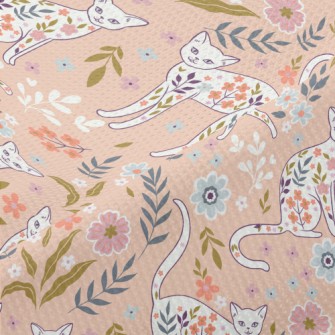 印花的優雅貓咪毛巾布(幅寬160公分)