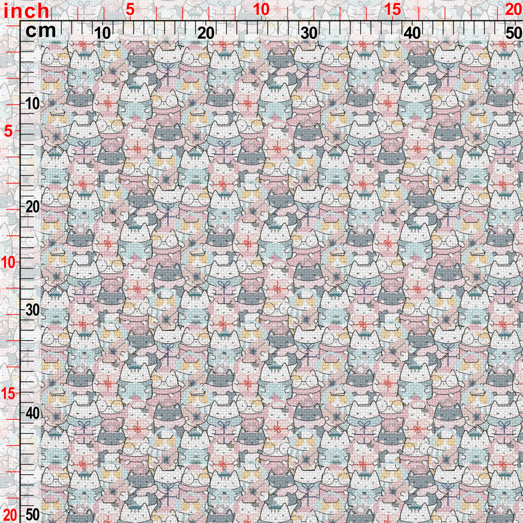 穿著暖和的貓咪們麻布(幅寬150公分)