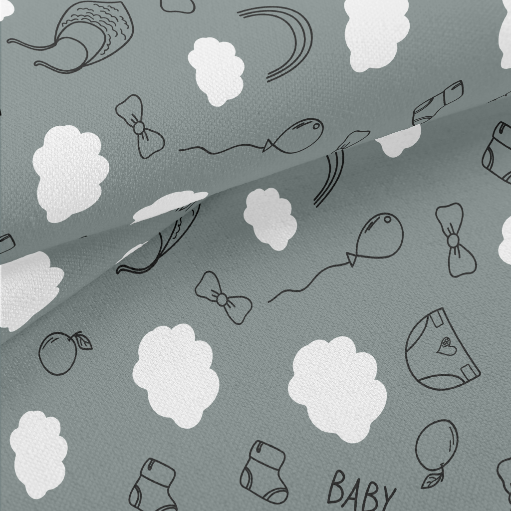 塗鴉手繪的嬰兒用品竹節麻(幅寬150公分)