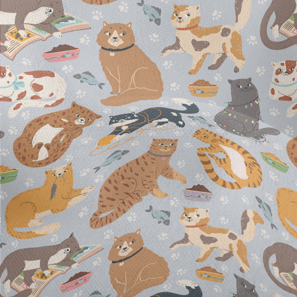 頑皮可愛的貓咪們竹節麻(幅寬150公分)
