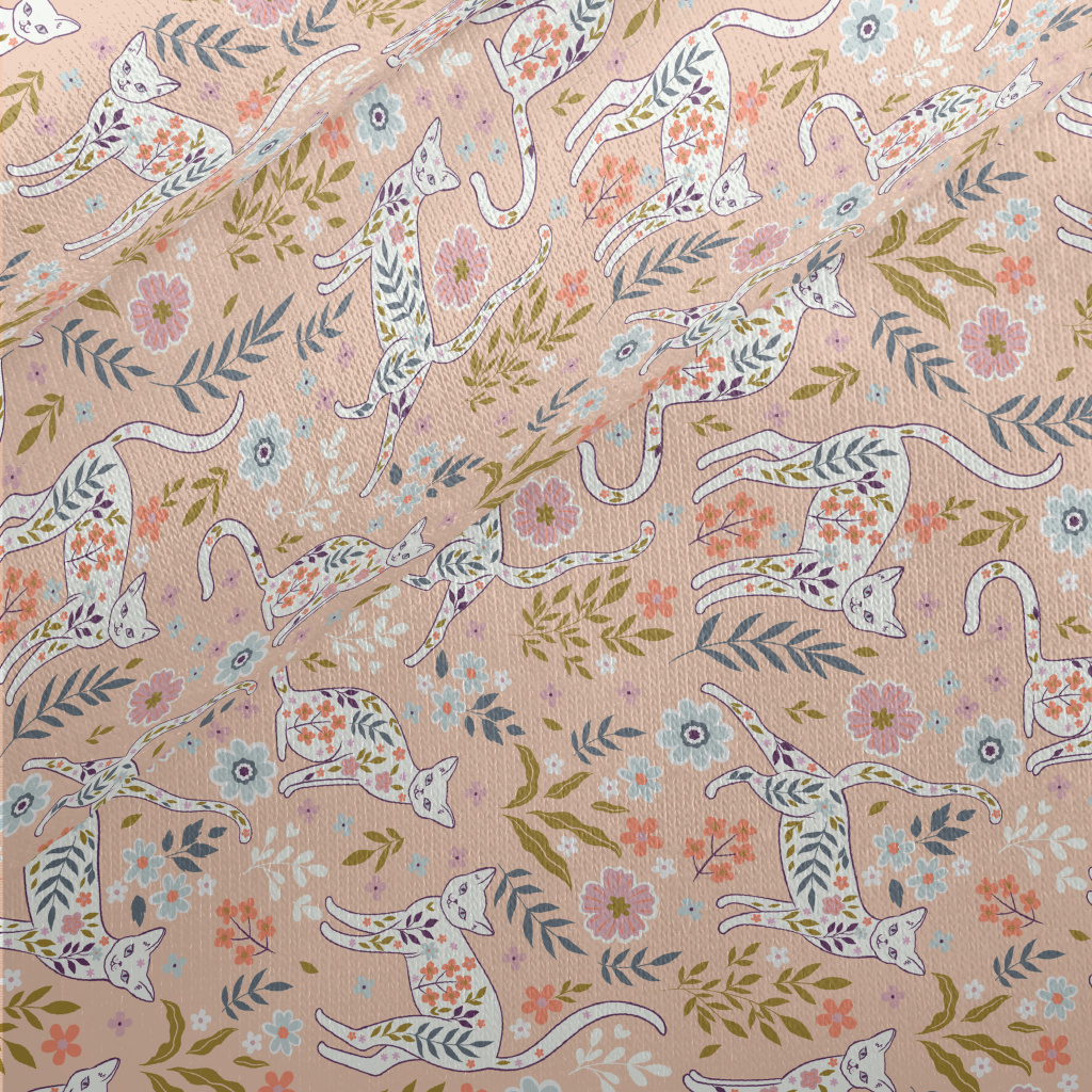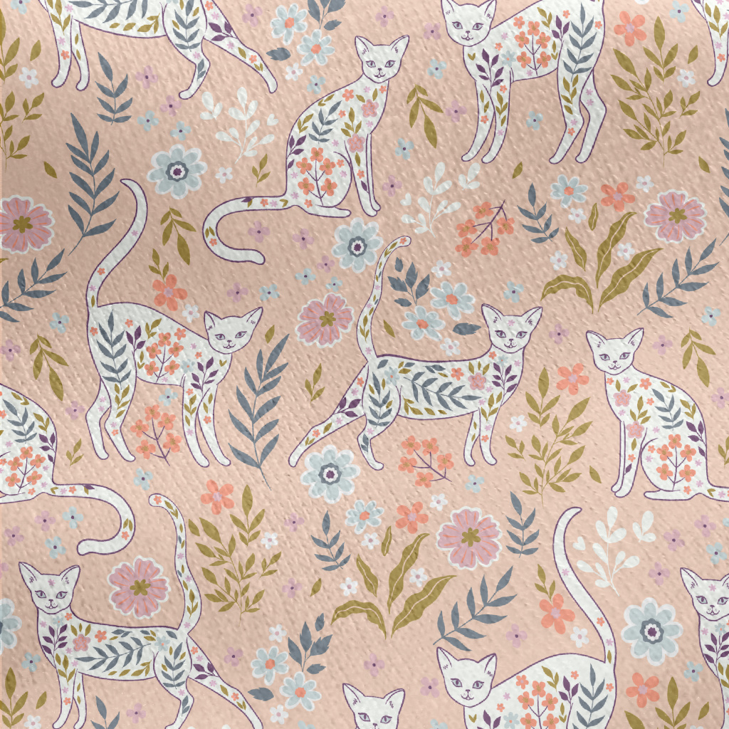 印花的優雅貓咪刷毛布(幅寬150公分)