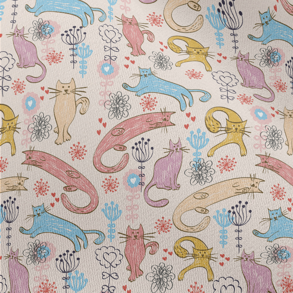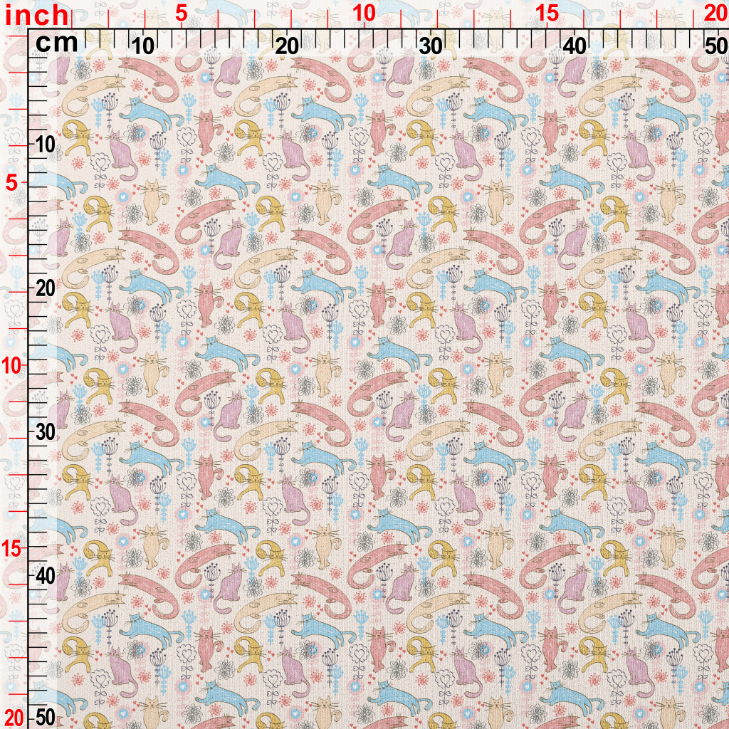 童繪長條貓咪雪紡布(幅寬150公分)