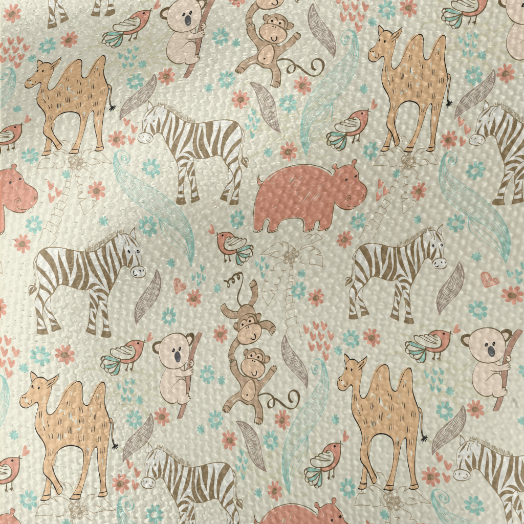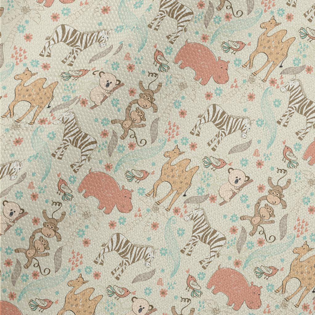 手繪兒童動物帆布(幅寬150公分)