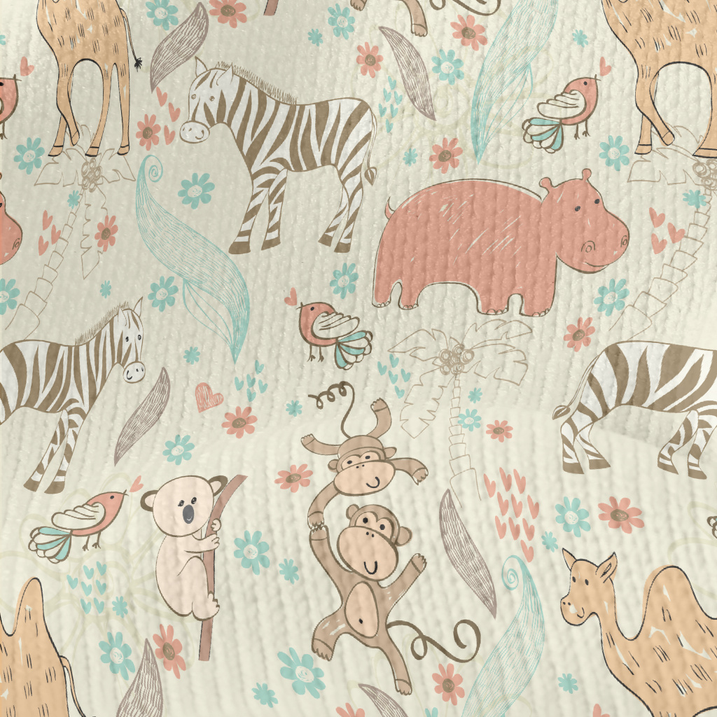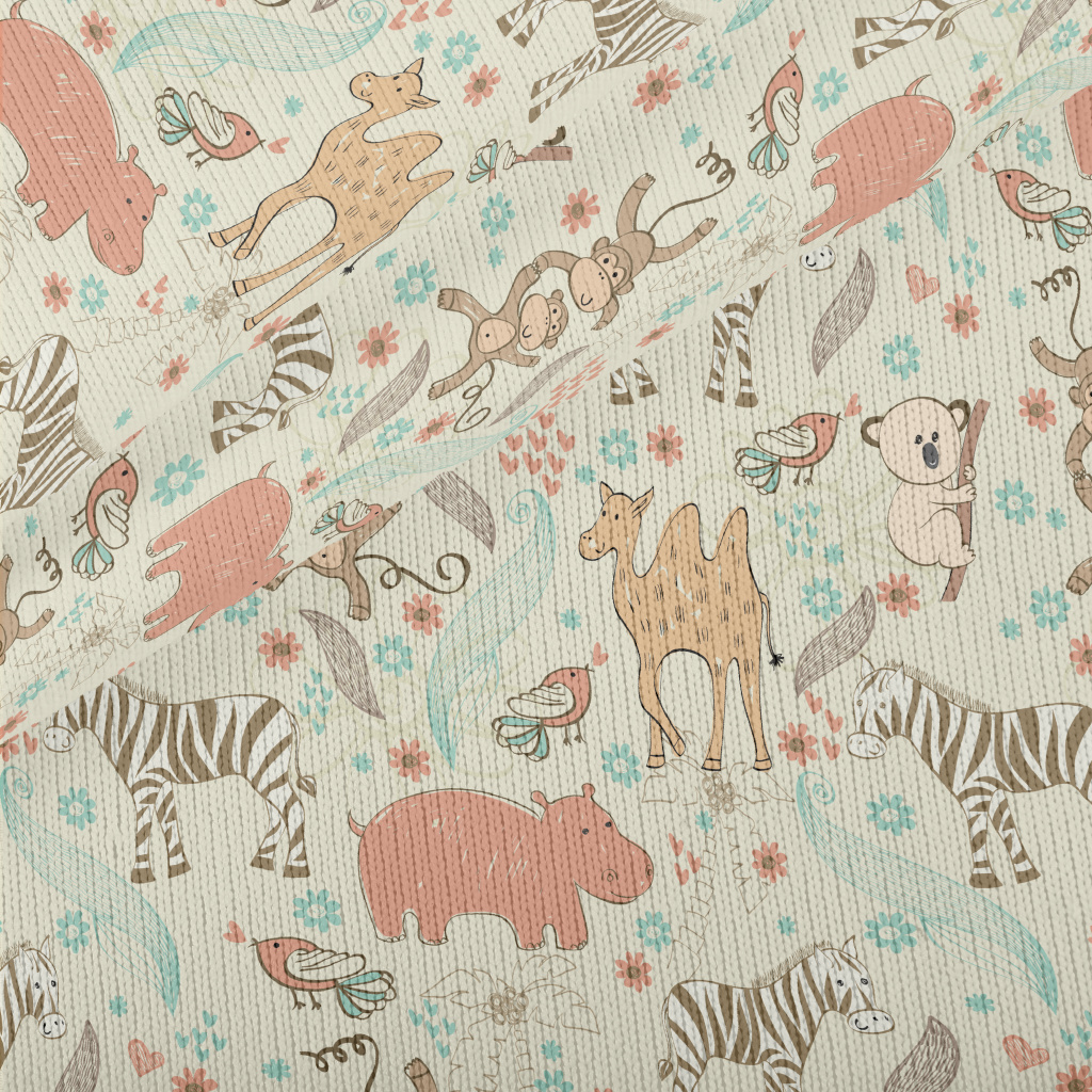 手繪兒童動物仿毛衣布(幅寬150公分)