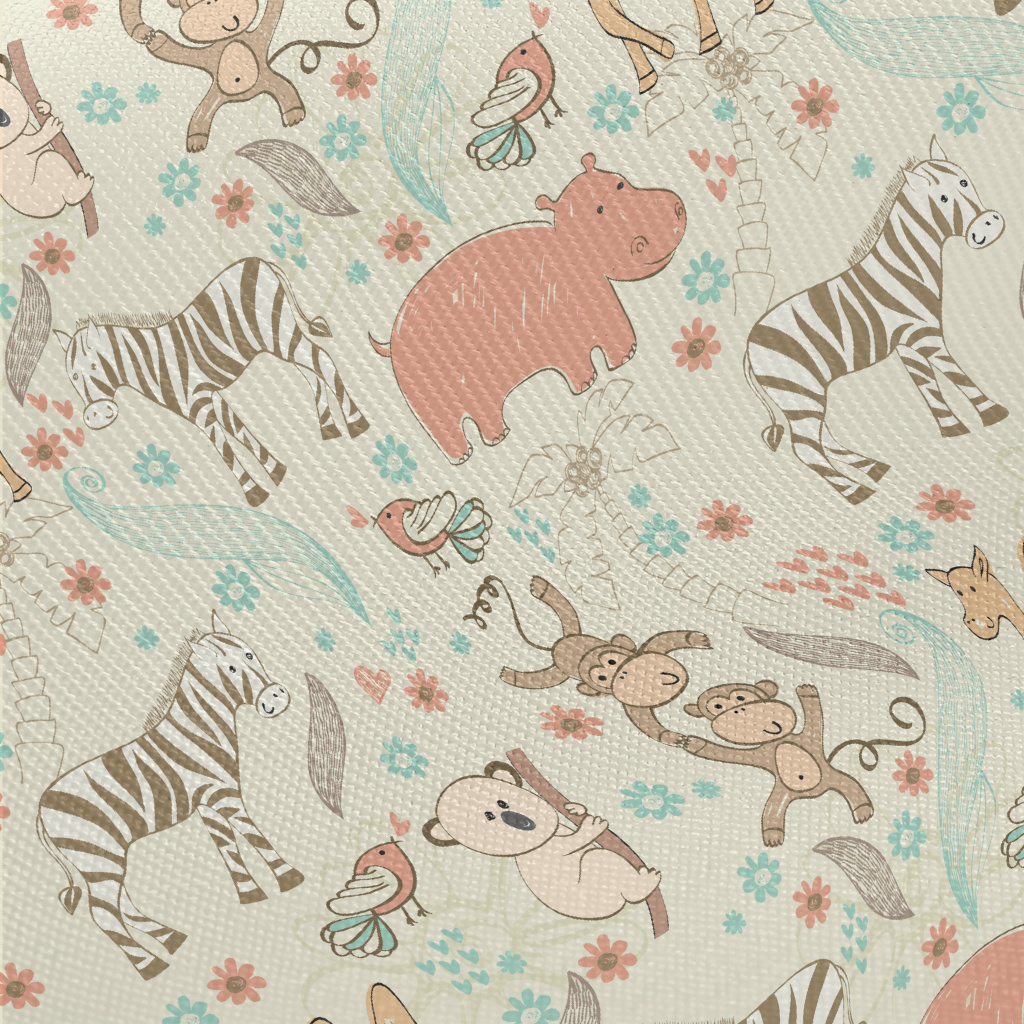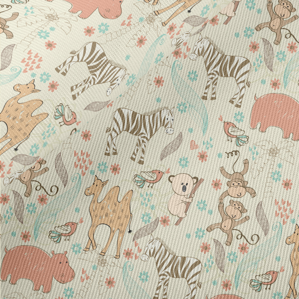 手繪兒童動物厚棉布(幅寬150公分)