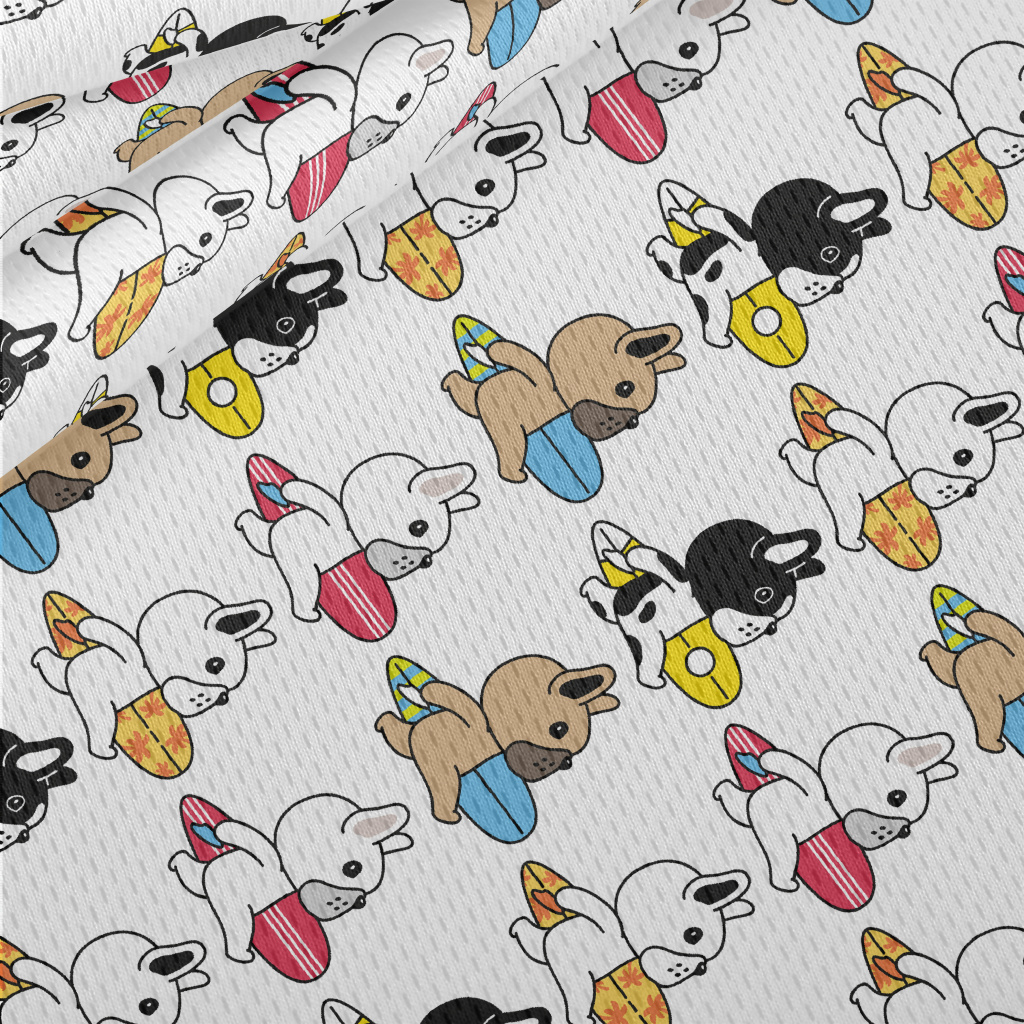 拿著衝浪板的狗狗鳥眼布(幅寬160公分)