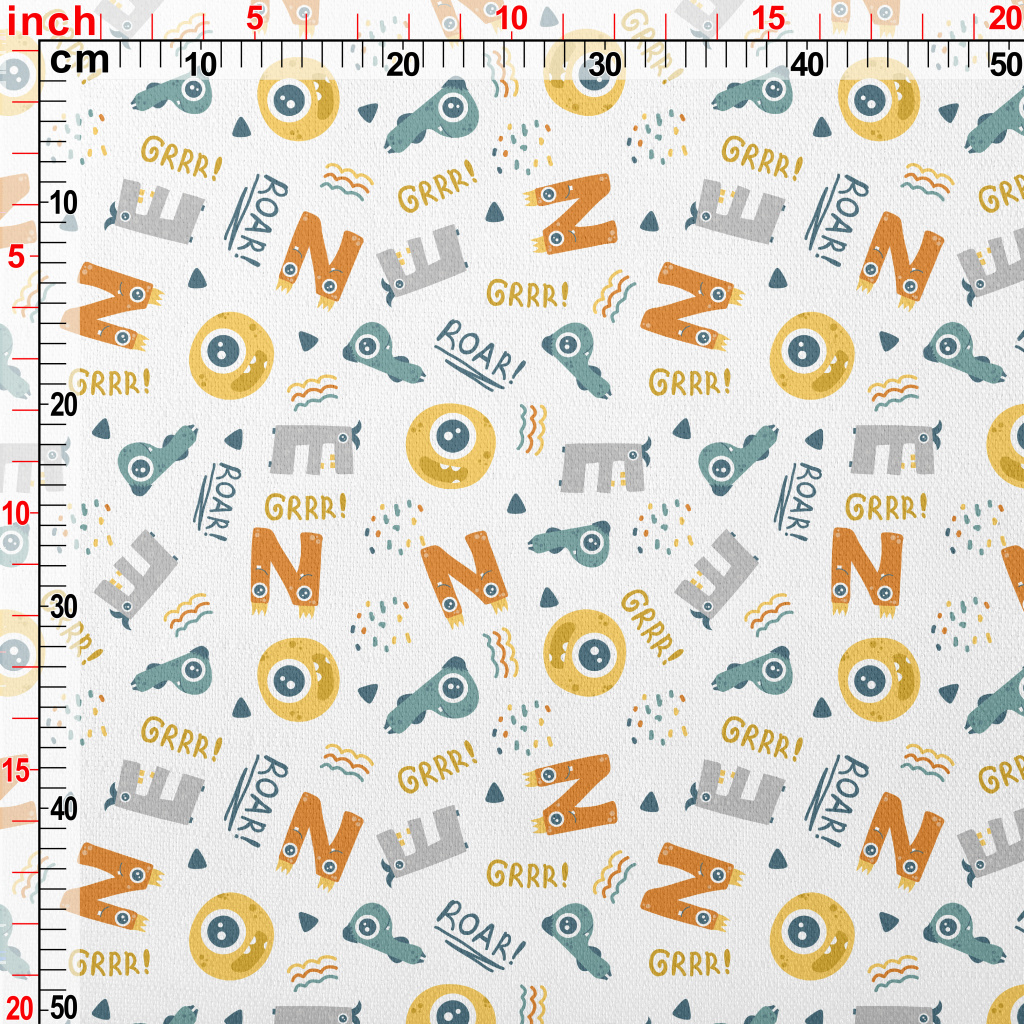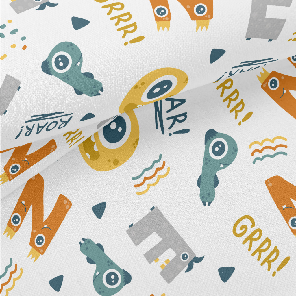 外星人風格的英文字母竹節麻(幅寬150公分)