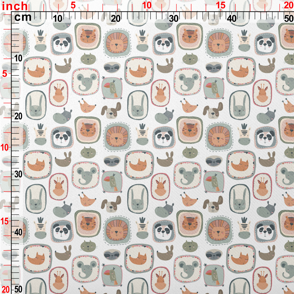 乖巧可愛的動物頭斜紋布(幅寬150公分)