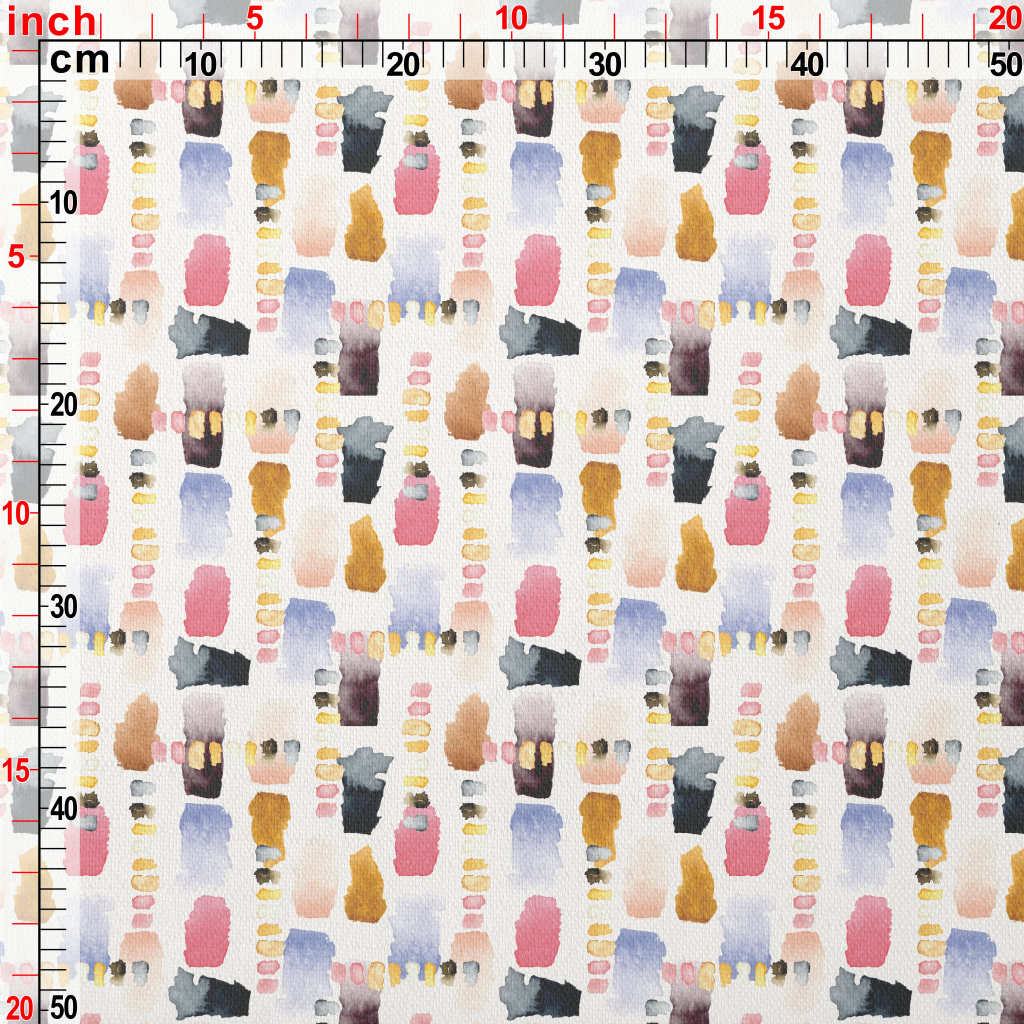彩色抽象水彩色塊竹節麻(幅寬150公分)