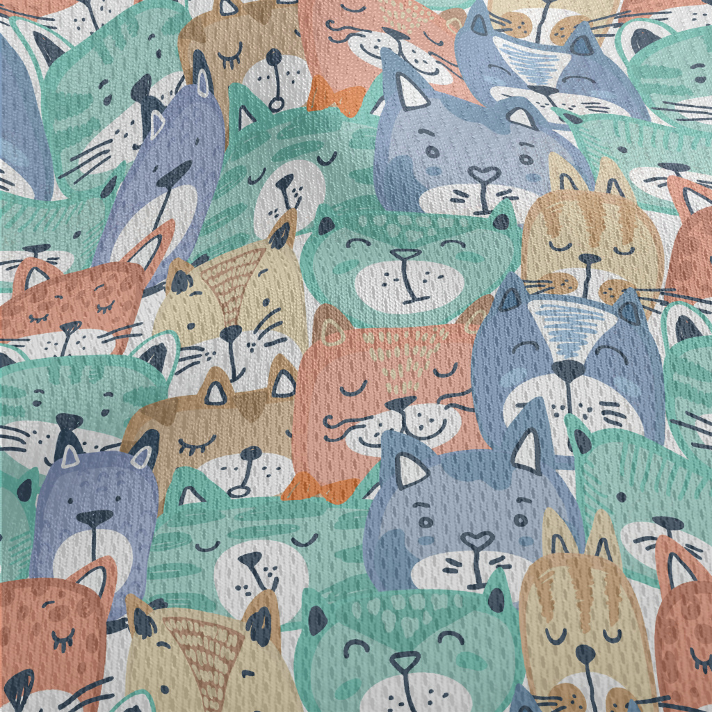 手繪彩色貓咪臉鳥眼布(幅寬160公分)