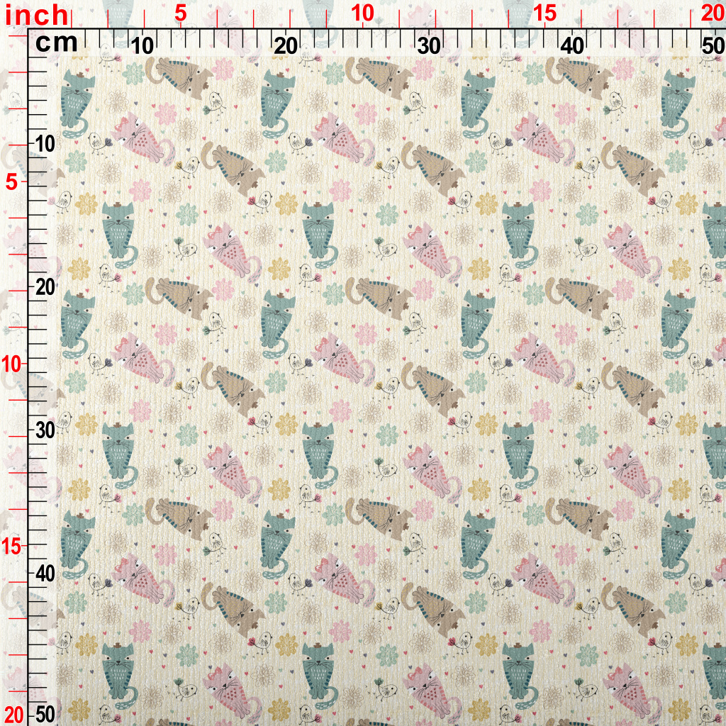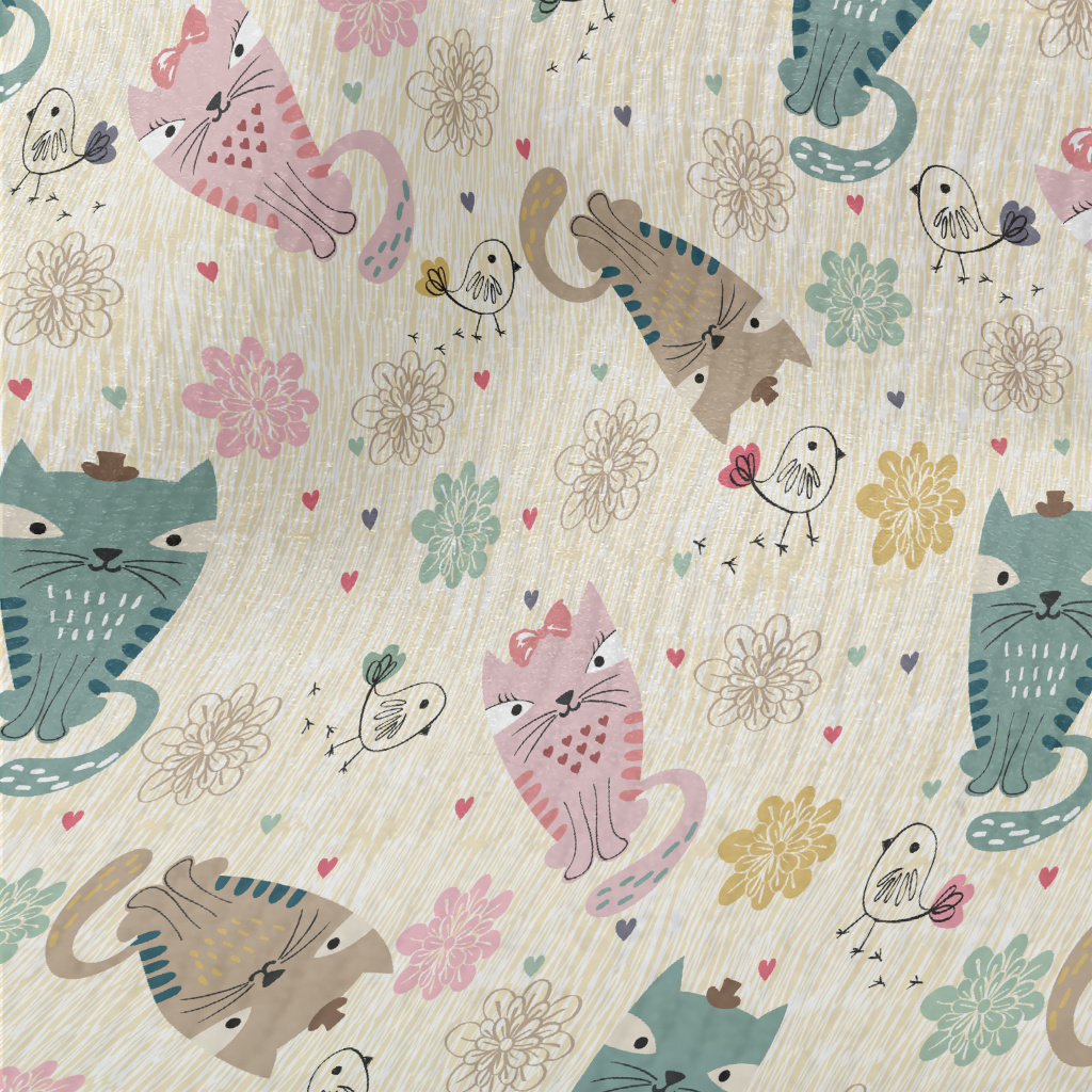 彩色貓咪和線條小鳥毛巾布(幅寬160公分)