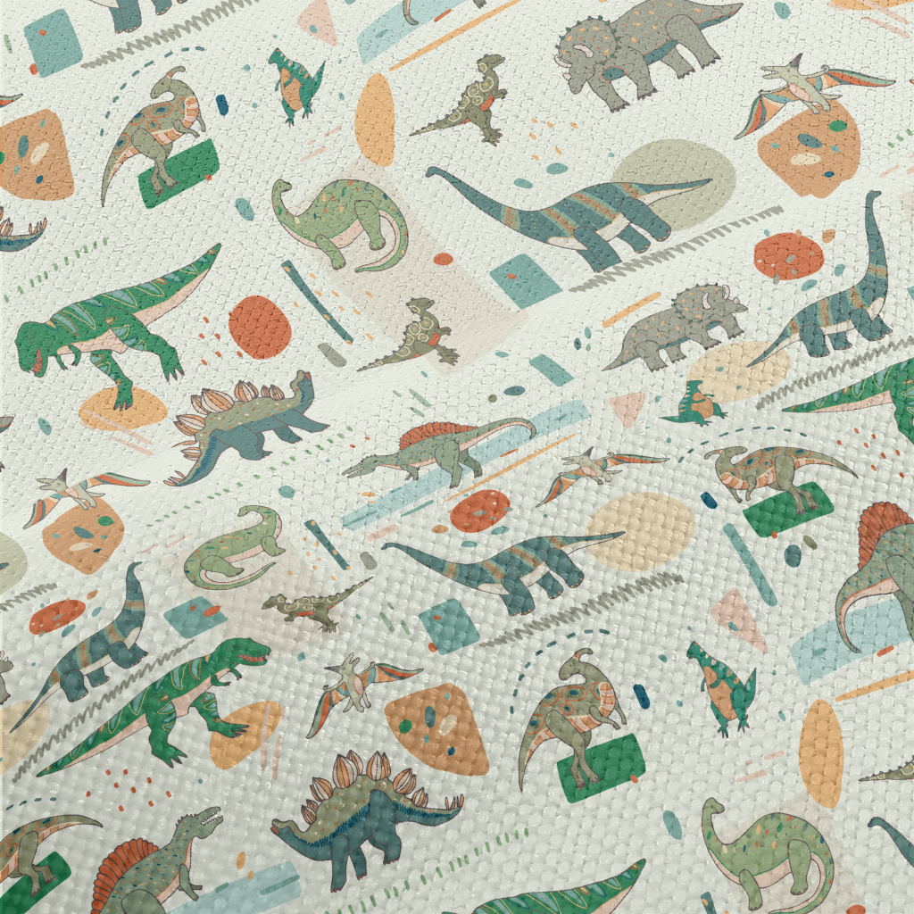 寫實彩色恐龍麻布(幅寬150公分)