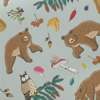各種蘑菇與森林動物燈芯絨(幅寬150公分)