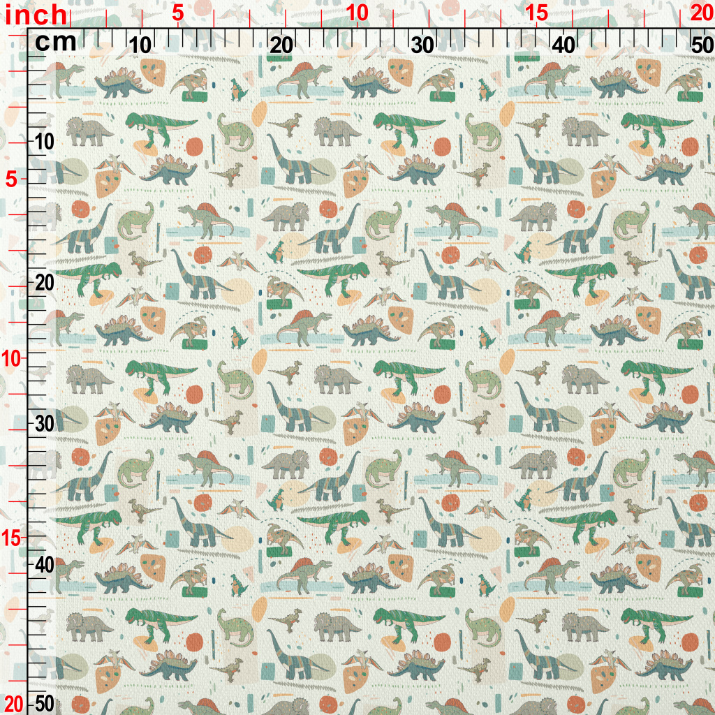寫實彩色恐龍竹節麻(幅寬150公分)