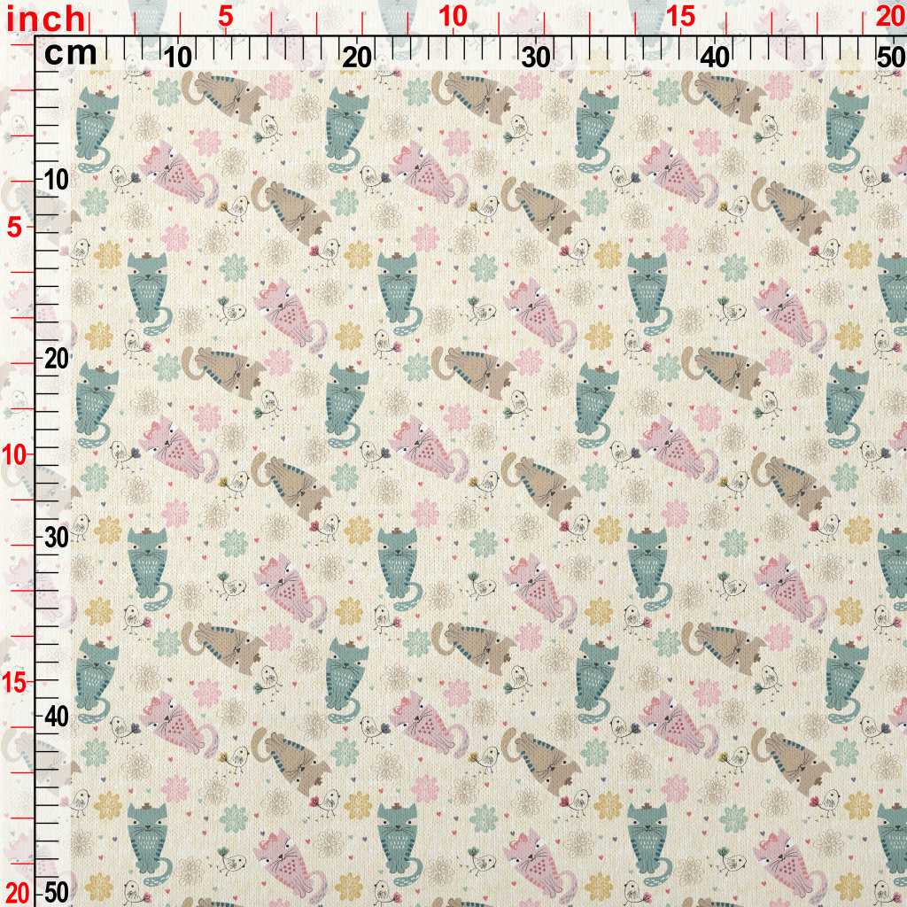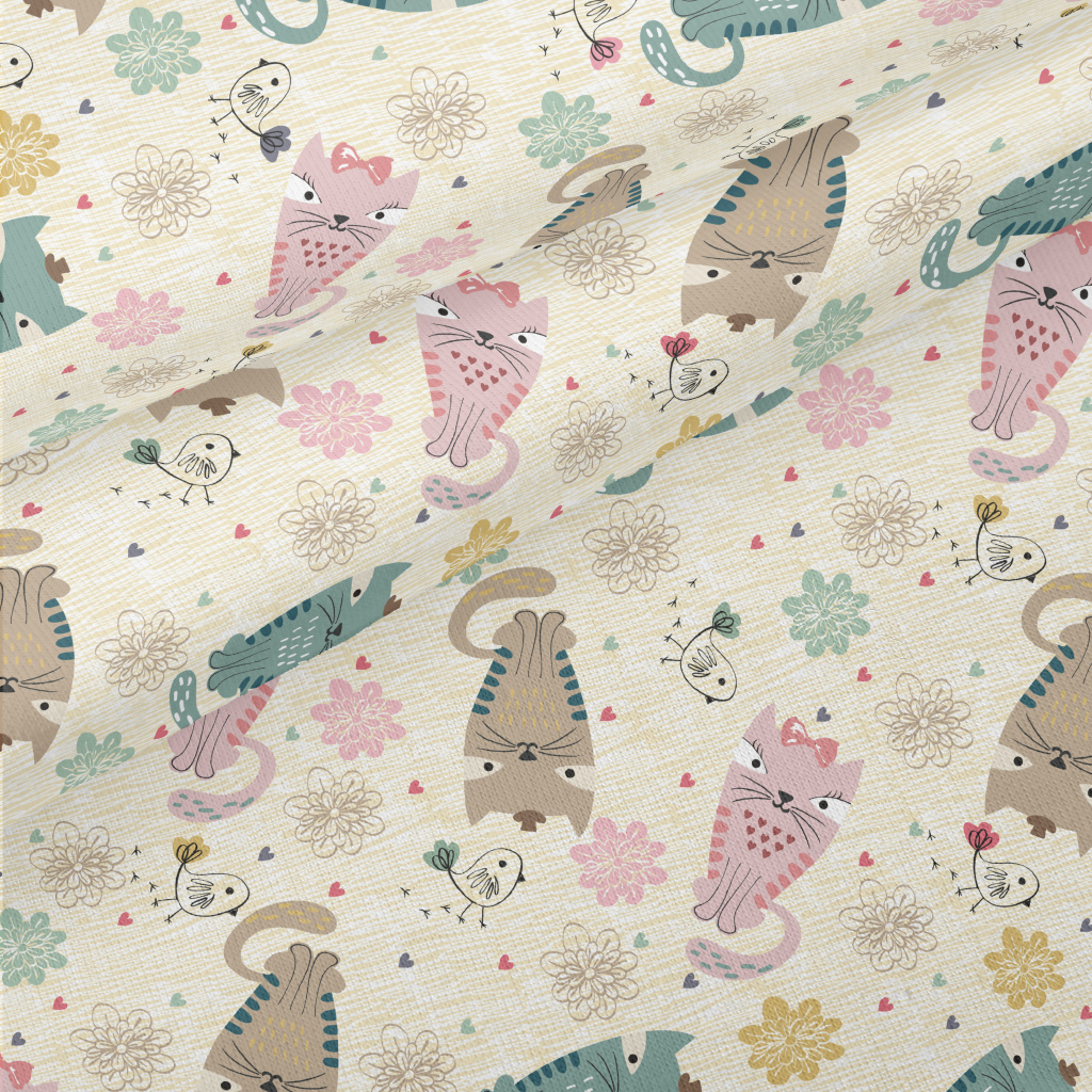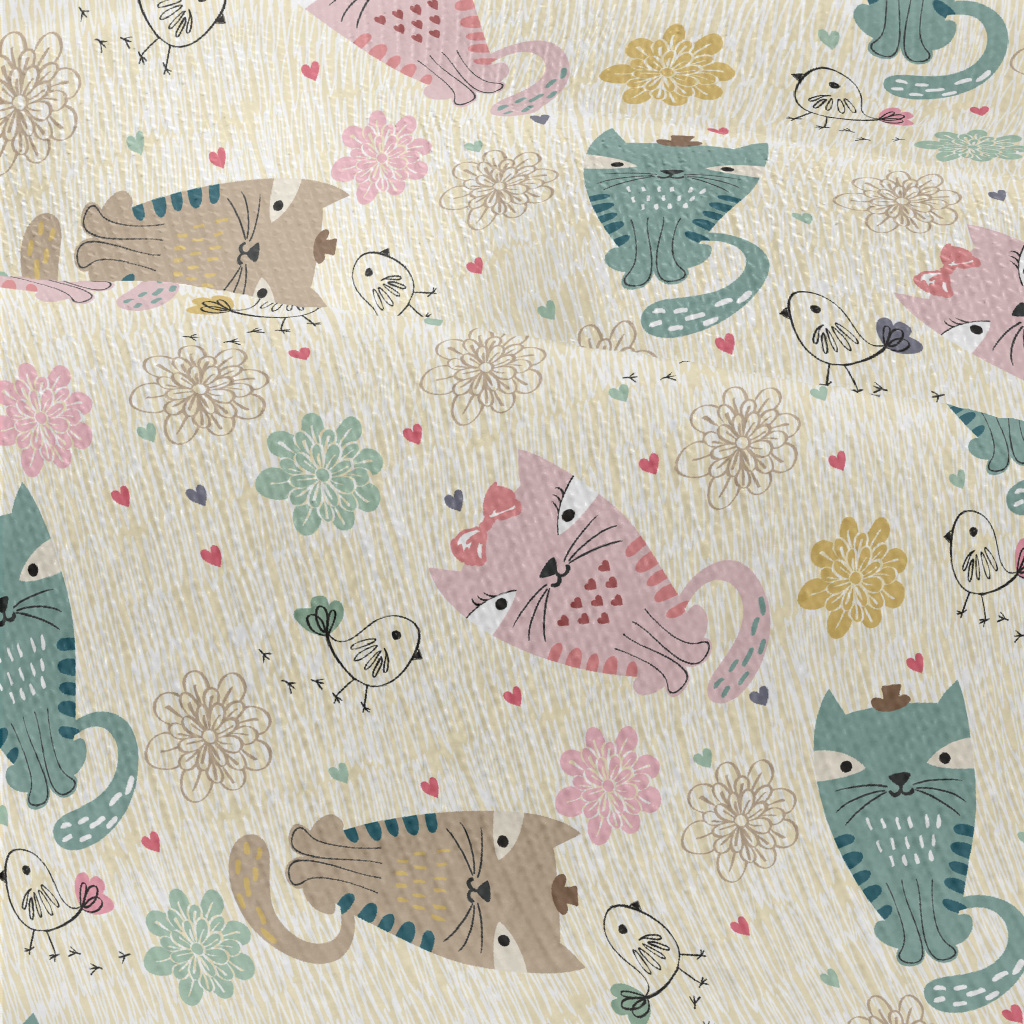 彩色貓咪和線條小鳥仿棉布(幅寬150公分)