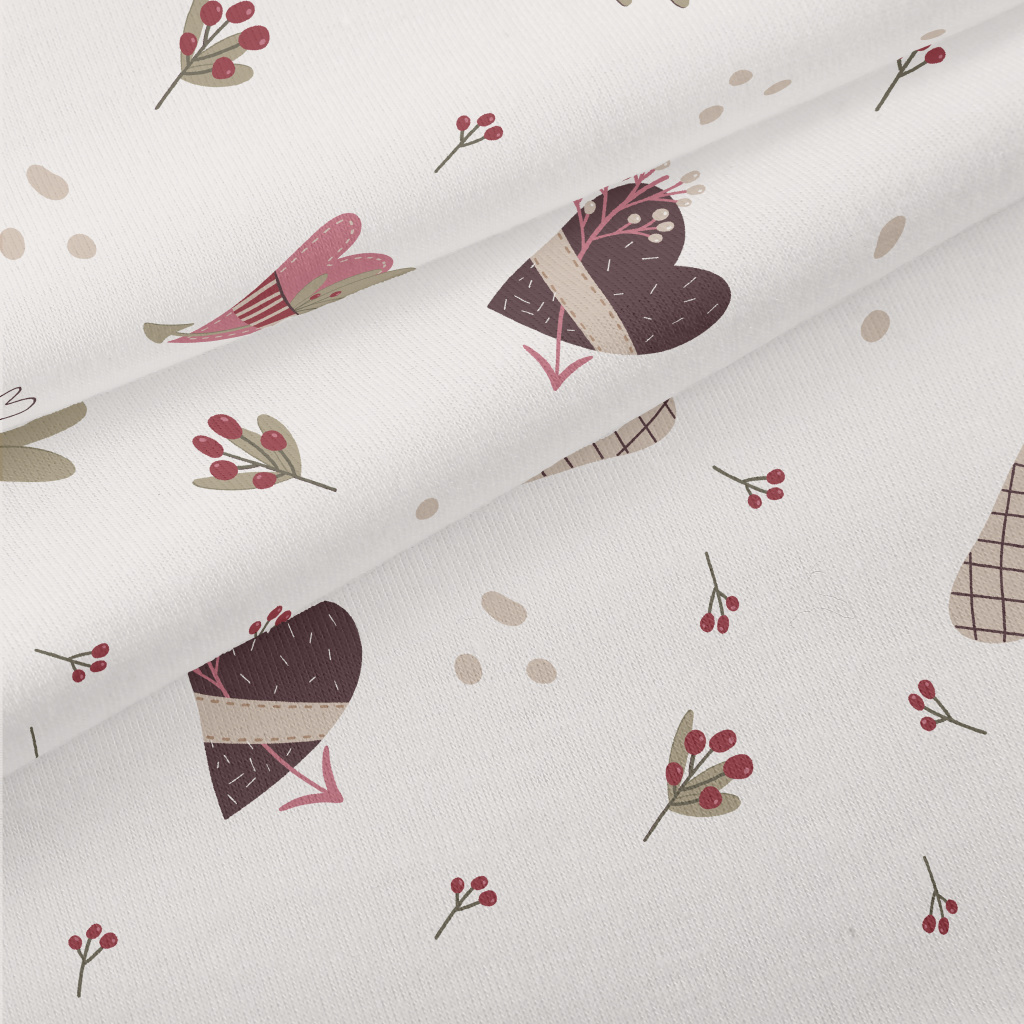造型愛心和紅色果子仿棉布(幅寬150公分)