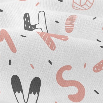 粉黑色可愛英文字母仿毛衣布(幅寬150公分)