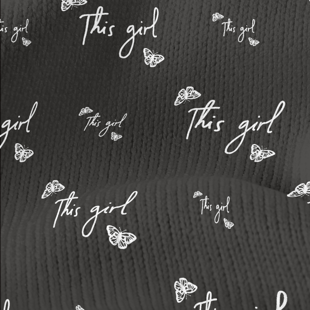 女孩英文與線條蝴蝶仿毛衣布(幅寬150公分)