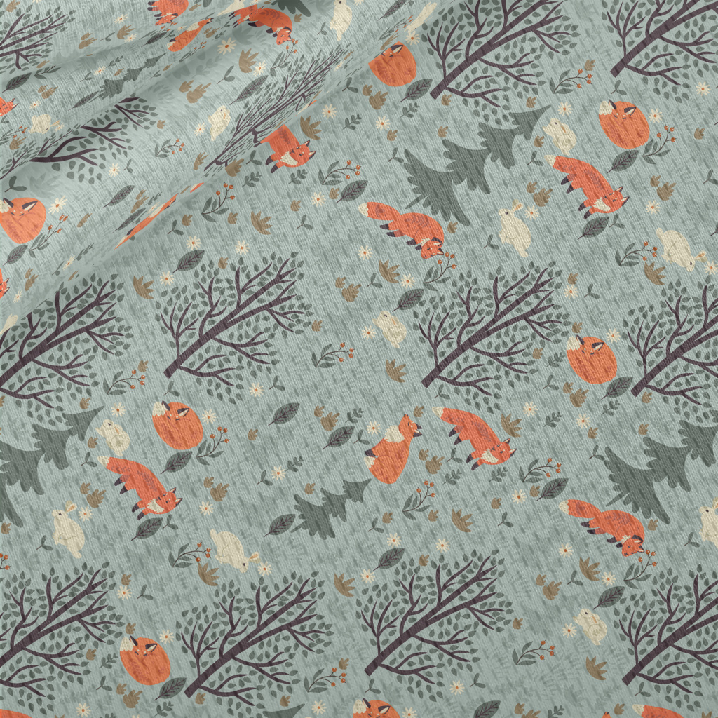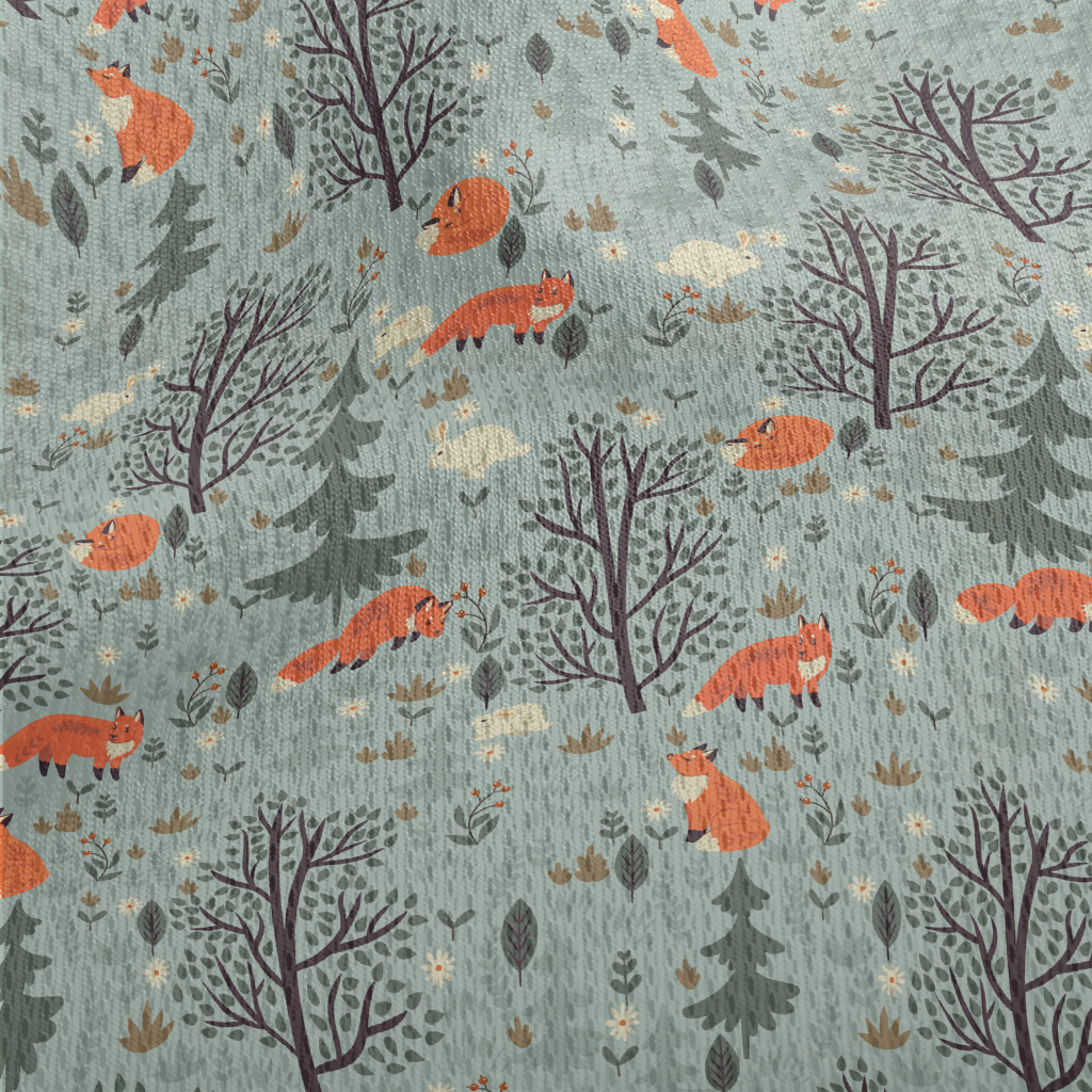 森林活躍的狐狸鳥眼布(幅寬160公分)