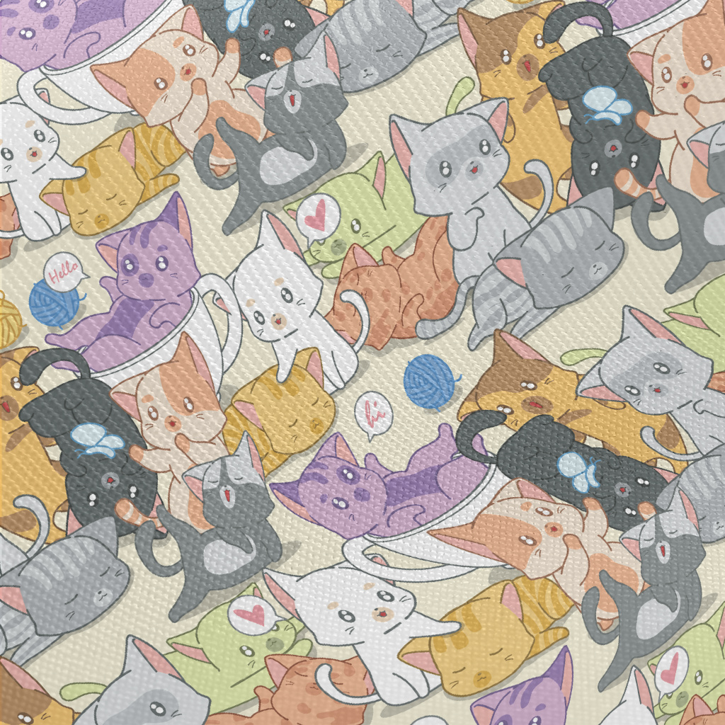 可愛玩耍貓咪們斜紋布(幅寬150公分)