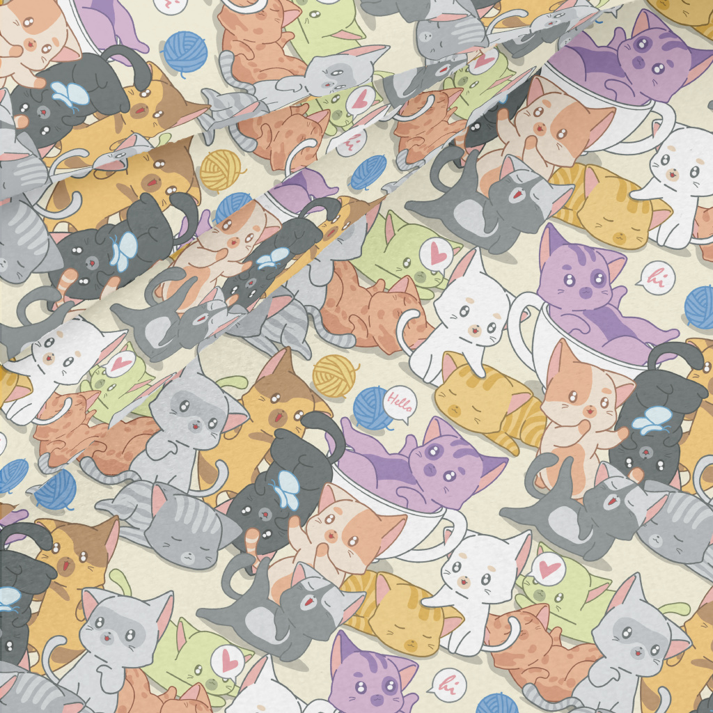可愛玩耍貓咪們水晶絨(幅寬160公分)