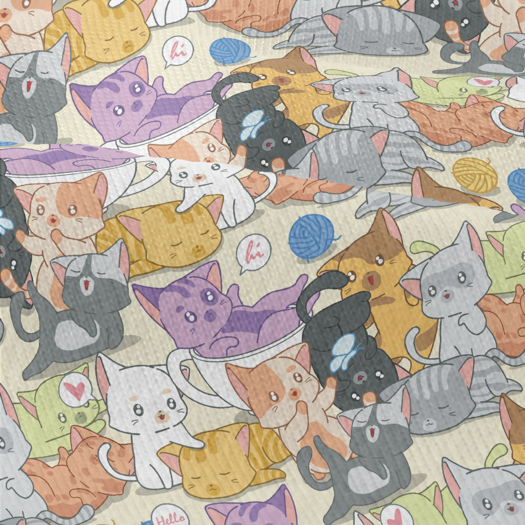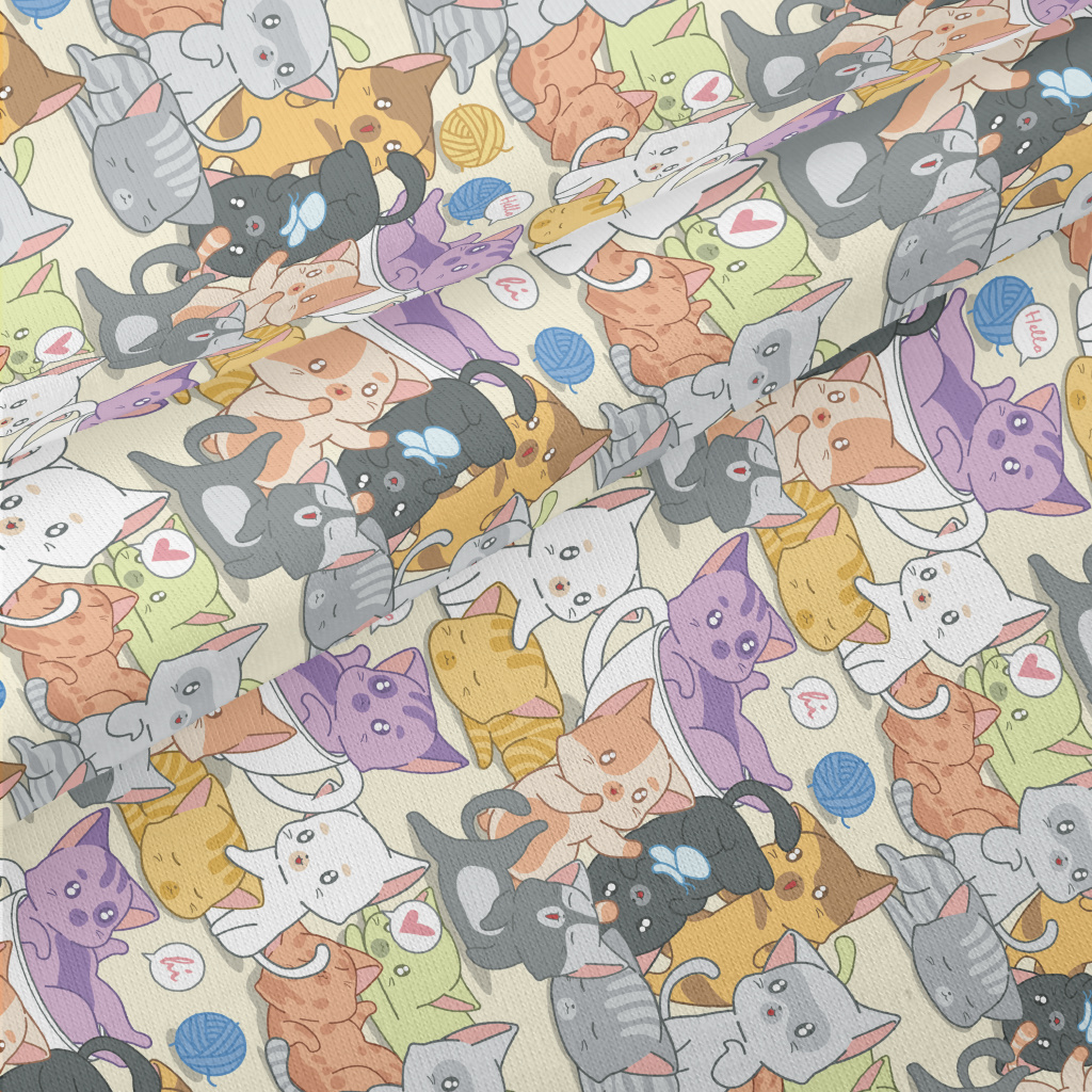 可愛玩耍貓咪們仿棉布(幅寬150公分)