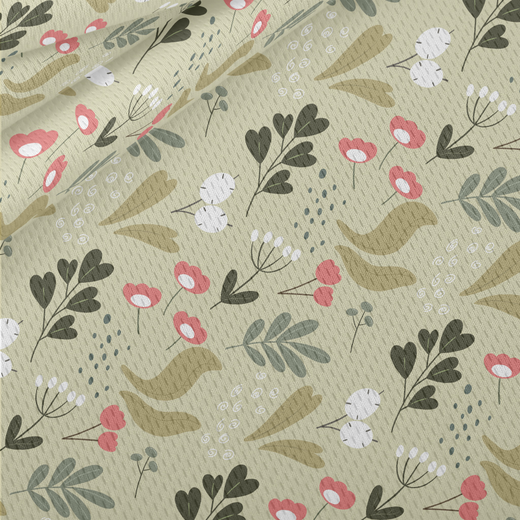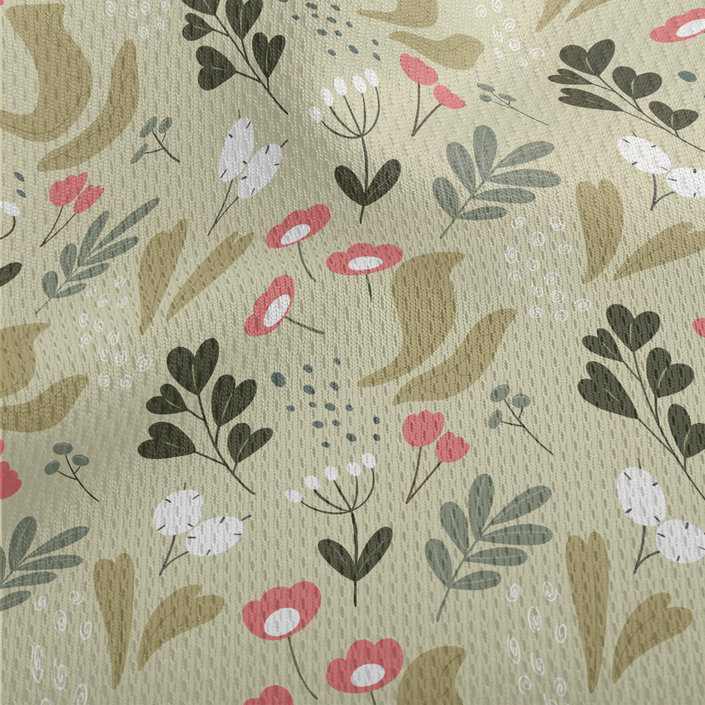 簡約色塊花朵草葉鳥眼布(幅寬160公分)