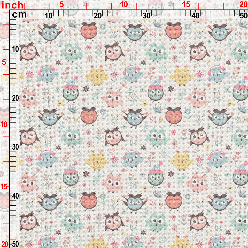 彩色圓滾呆萌貓頭鷹麻布(幅寬150公分)