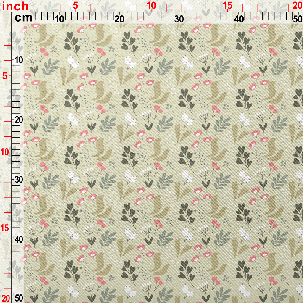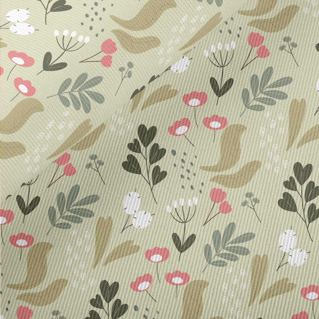 簡約色塊花朵草葉斜紋布(幅寬150公分)